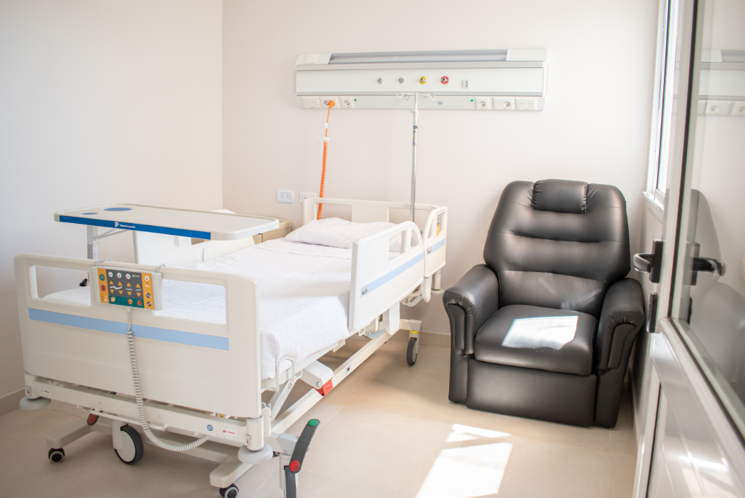 Este nuevo espacio incluye mobiliario de alta calidad, como camas ortopédicas de alta tecnología, televisores smart, sofás y sillones, aire acondicionado y baños privados tanto para habitaciones simples como compartidas. Además, el piso cuenta con monitoreo centralizado del estado de salud del paciente y paneles para la asistencia de oxígeno y aire en cada habitación.