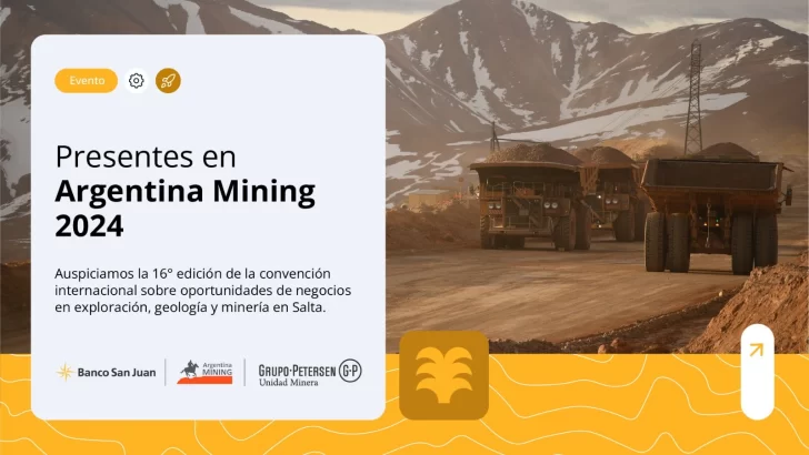 Banco San Juan está presente en Argentina Mining 2024, el encuentro internacional de minería que se desarrollará hasta este viernes 30 en el Centro de Convenciones de la ciudad de Salta, con la participación las principales empresas mineras que operan en el país, la exhibición de proyectos, productos y servicios, y la presencia de oradores locales e internacionales.