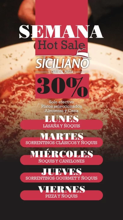 ¡Siciliano se sube al Hot Sale! Disfruta de un 30% de descuento en platos seleccionados.