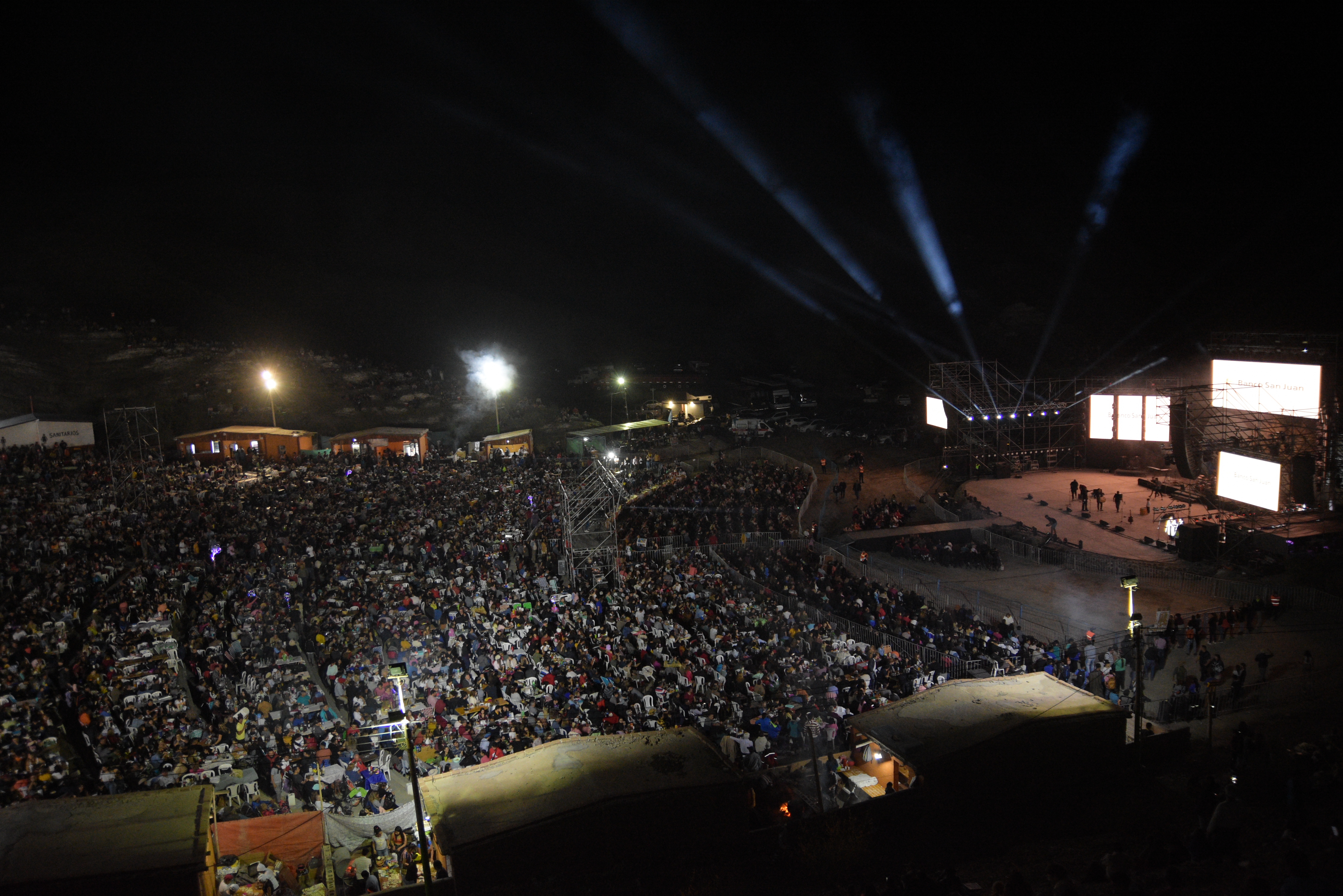 Ante un paisaje natural imponente, el público participó con entusiasmo (según la organización estimó entre 9 mil y 10 mil asistentes locales y provenientes de otros distritos de la provincia, como también de La Rioja y de Córdoba) de los espectáculos de la segunda noche de la Fiesta de la Tradición, en el Anfiteatro Buenaventura Luna. Contra todos los malos pronósticos climáticos, resultó una jornada ideal para los artistas y el público. Desde las 20 hs los números locales, provinciales y nacionales fueron muy aplaudidos por la multitud que no sólo ocupó la explanada del predio sino también los cerros. El himno jachallero "Vallecito", interpretado por el grupo Las Voces del Norte, marcó la apertura del festivo encuentro. Luego, Leyla Bustos y Perico Luna, más los conjuntos de danza Raíces del Norte y Añoranzas desplegaron atractivos cuadros coreográficos. Claudia Pirán y el Grupo Takú también tuvieron intervenciones que fueron abonando terreno para las figuras centrales: Los Nocheros, Soledad y Canto 4. Para la madrugada, Los Capayanes y Aventureros Folk fueron los que pusieron el broche de cierre antes de la salida del sol. DIARIO DE CUYO hizo un recorrido por todo el predio registrando en imágenes momentos de una fiesta que no pierde brillo ni encanto con el correr de los años.