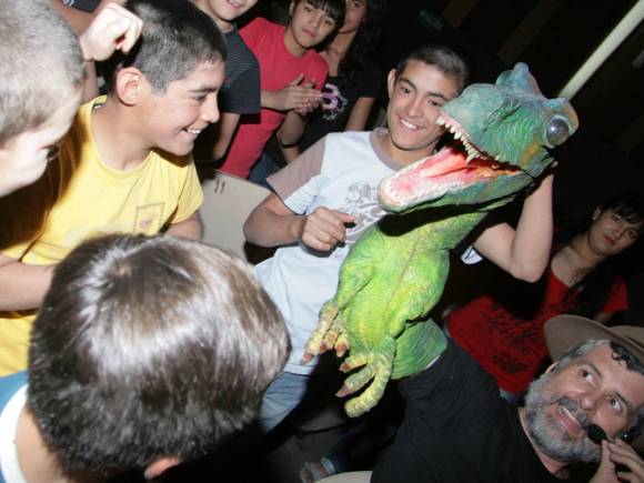Los pequeños no se privaron de preguntar a los inmensos títeres acerca de su historia. Claro, que los muñecos explicaron los conceptos con los de geoformas, extinción y bípedo a través de alocadas ocurrencias mechada con información actual que los bajitos manejan -como Jurassic Park, Barny e imponentes postales del Valle de la Luna-.