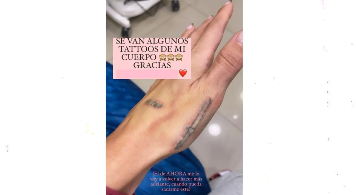 Por medio de sus historias de Instagram, Mica Tinelli mostró algunos de los tatuajes que decidió sacarse. “Se van algunos tattoos de mi cuerpo”, escribió en una de las publicaciones que hizo, donde exhibió una especie de puñal o cuchillo que tenía en su mano izquierda.