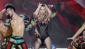 En pleno show, Britney Spears se dobló el tobillo y cayó. Se lesionó, permaneciendo en el piso unos instantes por el dolor. Video.