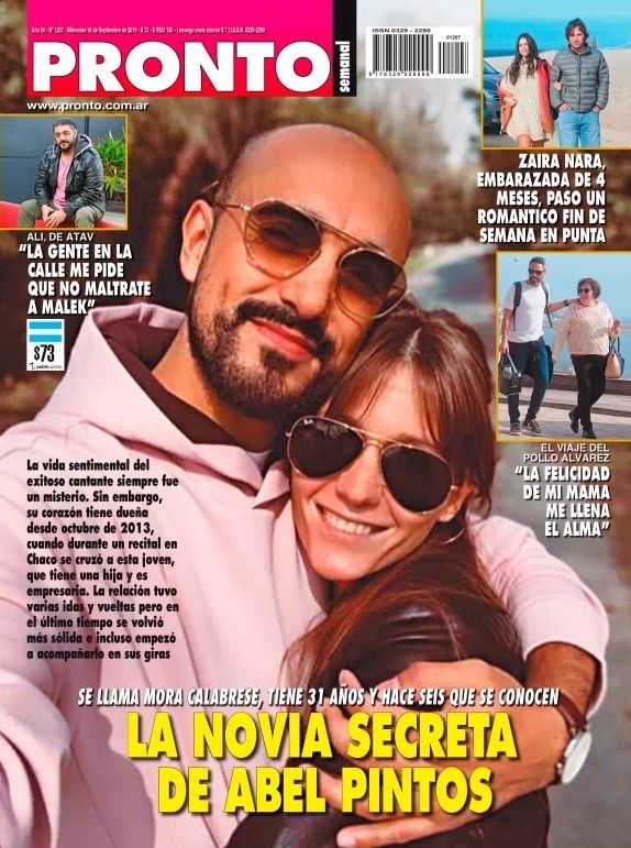 El primer dato sobre la relación del cantante con Calabrese lo había tirado la revista Pronto con una tapa muy elocuente en la que titulaba: "La novia secreta de Abel Pintos". Allí se informaba de que se trata de una empresaria chaqueña a quien Abel conoció después de un show en Resistencia. Ella, fanática de él, se acercó al representante del artista para ver si podía conocerlo y allí se habría dado el flechazo.