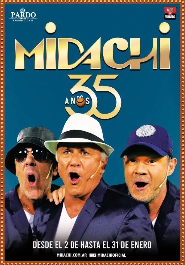 “Midachi 35 años”. Espectáculo con Dady Brieva, Miguel Del Sel y Chino Volpato. Miércoles a lunes de enero, 22 hs.