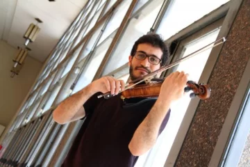 Esta noche será especial para varios músicos radicados en San Juan, ya que inaugurarán la prometedora temporada 2016 de la Sinfónica de la UNSJ. Pero sin dudas será ‘especialmente especial’ para uno de ellos, Nidhal Jeballi, el violinista tunecino que si bien ya actuó en el Auditorio Juan Victoria -desde que llegó de Estados Unidos, a mediados de 2015, para ejercer el cargo de concertino y también de profesor titular de violín del Departamento de Música- hoy debutará como solista junto a la Orquesta, con una obra exquisita. Ya más habituado al trabajo con su director y colegas, y también al ritmo y costumbres de esta provincia a la que arribó sin saber español -y por la que postergó sus planes de viajar a Europa-, el veinteañero artista cuenta que nació el 5 de junio de 1990 en la capital de Túnez, al norte de África; que es el segundo hijo -y único varón- de tres hermanos (las chicas viven en Francia); y que culminó estudios de violín y de composición en Indiana University Jacobs School of Music, donde permaneció desde 2008 hasta 2015, cuando recibió la propuesta de radicarse en San Juan, adonde tiene contrato hasta 2017. ‘Después veremos qué pasa’, dice. – ¿Cómo decidiste instalarte en San Juan? ¿Qué te impulsó a viajar tan lejos? – En ese momento no estaba en mi país. A los 18 años me fui a estudiar a Estados Unidos, a Indiana University Jacobs School donde hice el título y master, del cual me recibi el año pasado, justo antes de venir a San Juan. Tomé la decisión de venir porque tenía gana de conocer Latinoamérica, otras culturas diferentes, aprender español y ganar experiencia como concertino y profesor.