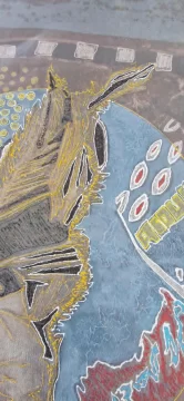 “Con 18 Mundos siempre tuvimos la idea de que una muestra no era exponer por exponer, sino trabajar con un concepto, tratar de contar algo. Ahora, entre estas charlas que siempre tenemos, surgió trabajar con paisajes, pero no el paisaje convencional que uno está acostumbrado a ver, la montaña, el bosque, etc; sino encarar el concepto desde otro punto de vista”, comentó a DIARIO DE CUYO Graciela Faedo. “Se nos ocurrió que entre el cielo y la tierra pasan muchas cosas, ahí está todo. La vida transcurre entre el cielo y la tierra. De ahí surgió la idea de otros paisajes que se pueden desarrollar: un paisaje interior, alguna situación personal, un entramado en el que estamos envueltos… Esa fue la parte conceptual que desarrollamos. Cada uno de los artistas tomó el título como puntapié para contar qué significa, para él o ella, estar entre el cielo y la tierra; para contar su propio paisaje”, agregó acerca de los trabajos individuales -piezas de 1 m de ancho por 2 m de altura- que expondrán en la sala principal del complejo, pero que no serán lo único de esta muestra.
