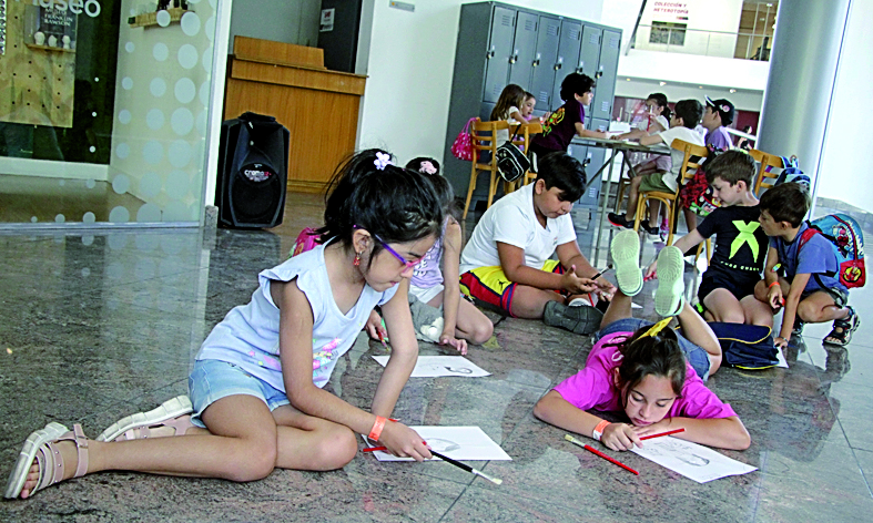 Para Camila, de 8, esta es su primera vez. "Me gusta mucho porque puedo dibujar y pintar", dijo con la panza en el piso mientras daba sus trazos en el papel.