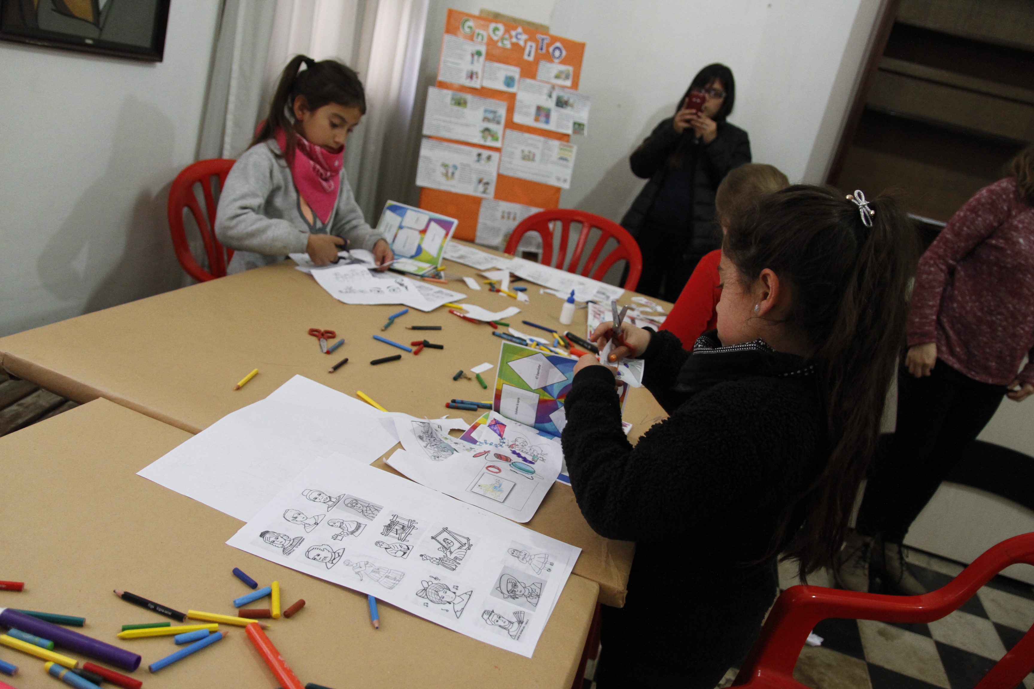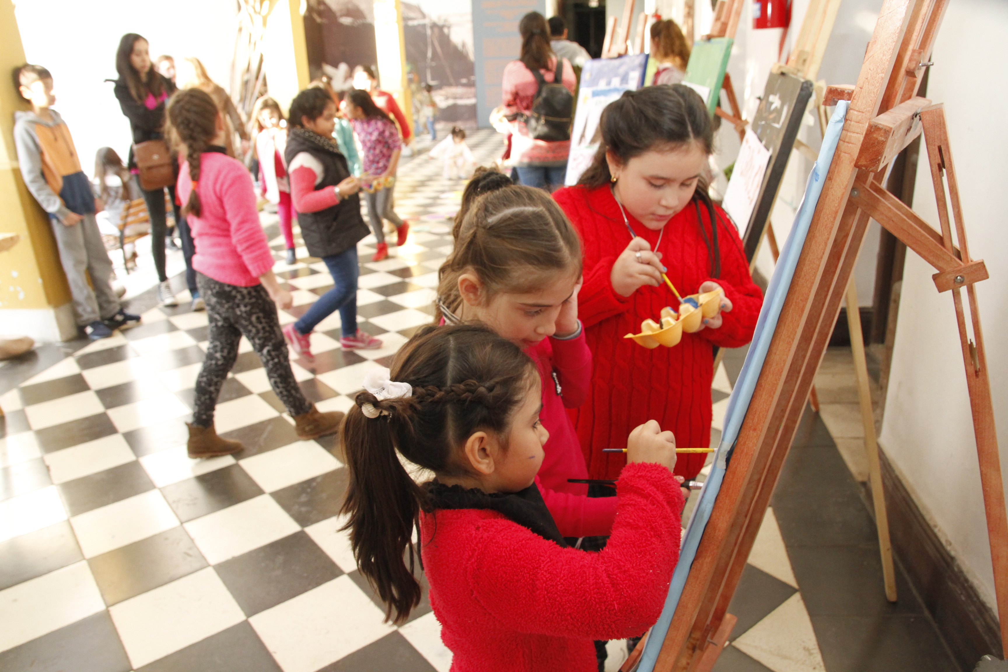 Mientras que, en otro sector del patio del museo, los chicos y chicas contaban con los caballetes para pintar y dibujar con libre creatividad. Era un mar de temperas abiertas para plasmar en el papel los personajes, retratos y paisajes que más le gustaban.