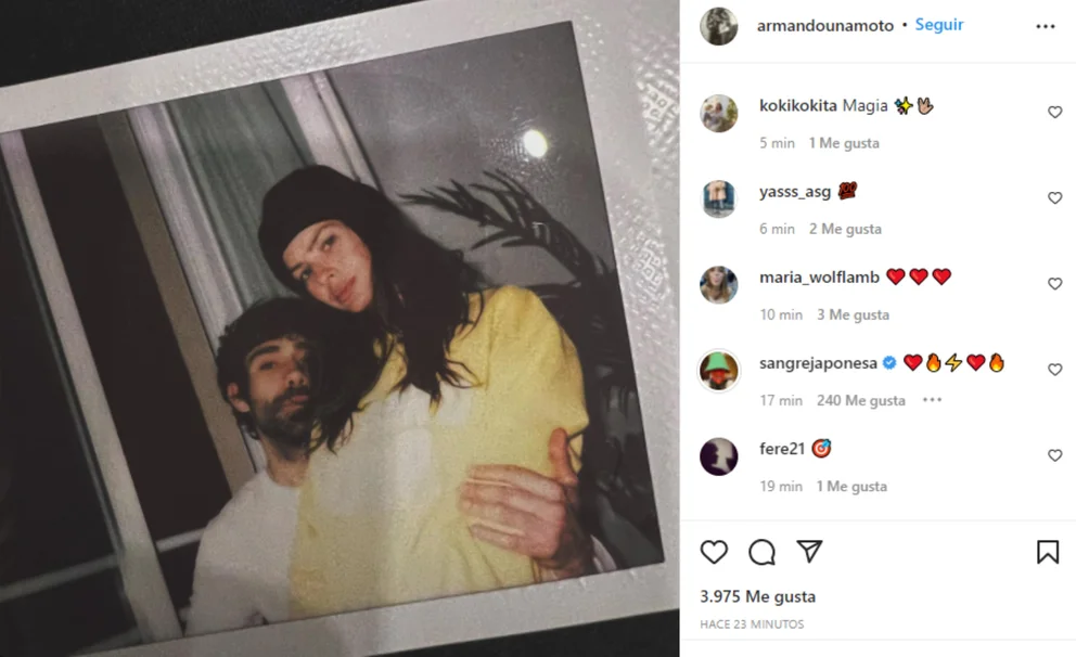 La primera en hablar de este romance fue Estefanía Berardi, la panelista del ciclo Mañanísima que conduce Carmen Barbieri por Ciudad Magazine, quien comentó en sus redes sociales las llamativas coincidencias entre los protagonistas y, sobre todo, su intercambio en las redes. En Instagram, Armando utiliza el usuario @armandounamoto, haciendo referencia a la empresa de rodados que tiene. Y en su biografía solo lleva escrito “Cosas que corren”. La periodista sumó la información de que la actriz argentina le dio like a una publicación que data del 2016, pero que recién comenzó a seguirlo en octubre.