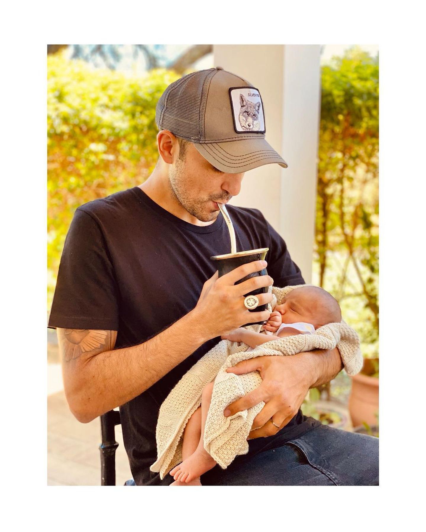“Los días van por acá”, escribió el intérprete en su cuenta de Instagram y acompañó el mensaje con dos fotos: una en el estudio de grabación y otra, muy relajado tomando un mate y con Agustín en brazos. De esta manera, además de generar ternura con la imagen de su hijo, también dio a entender que se encuentra trabajando en algo nuevo con la música.