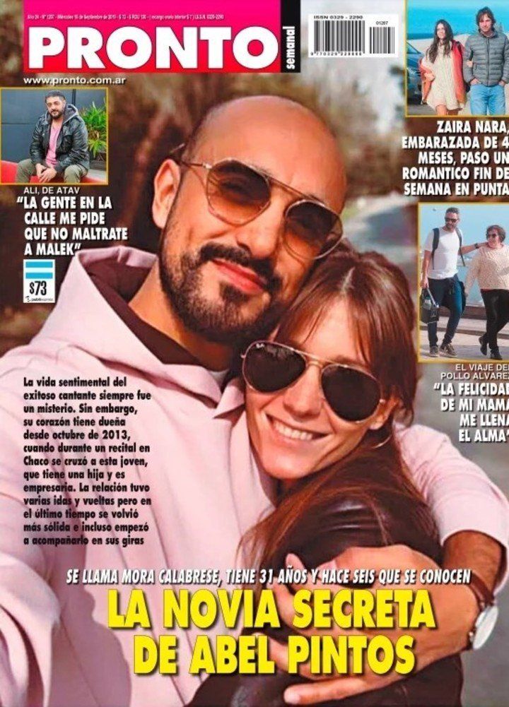 Pero la revista Pronto, en la tapa de su última emisión, sorprendió al publicar una imagen del intérprete con quien sería su supuesta novia. "La novia secreta de Abel Pintos", se lee en el título principal del semanario. "Su corazón tiene dueña", se agrega.