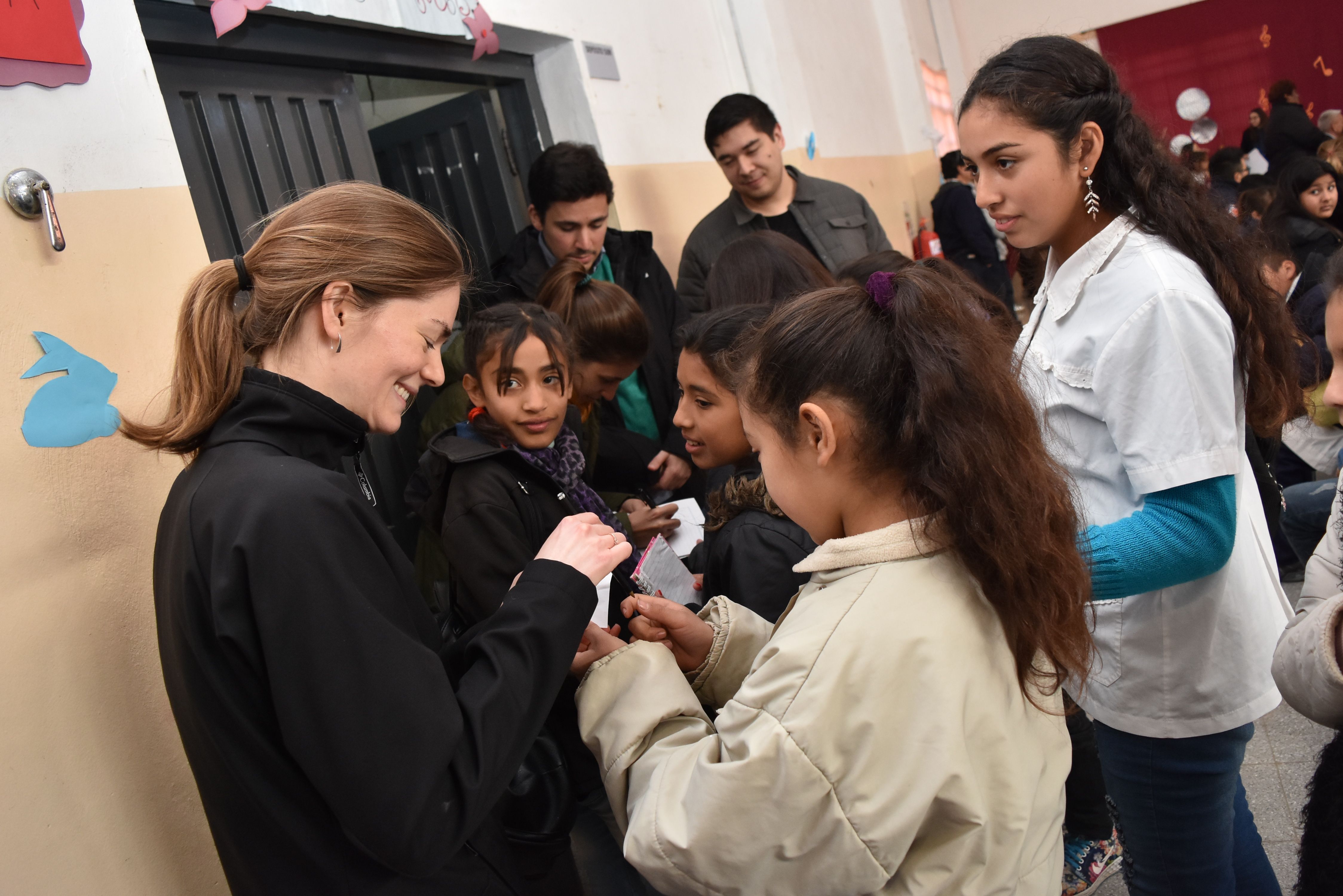 La profesora Brenda Benner se llevó muchas postales de los niños de 25 de Mayo.