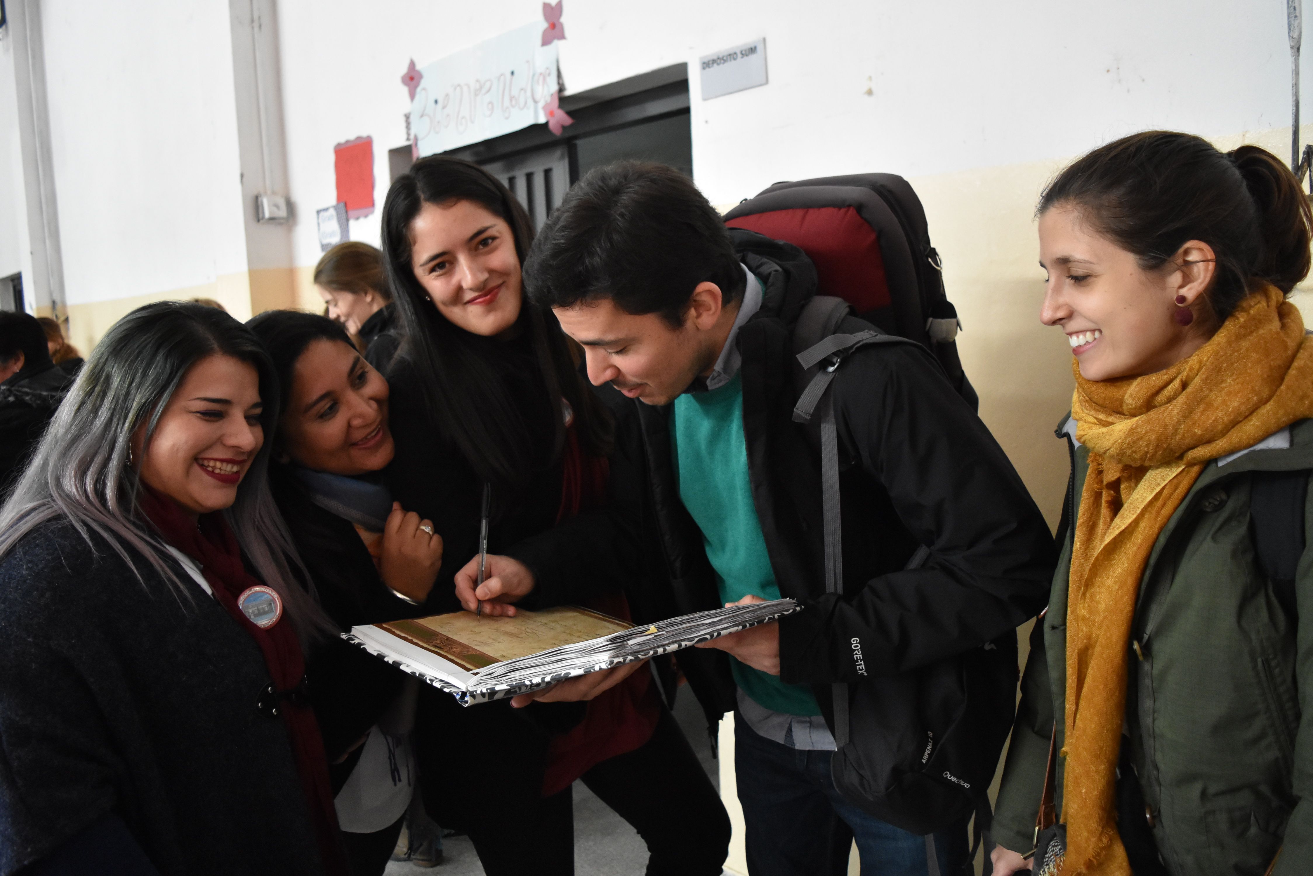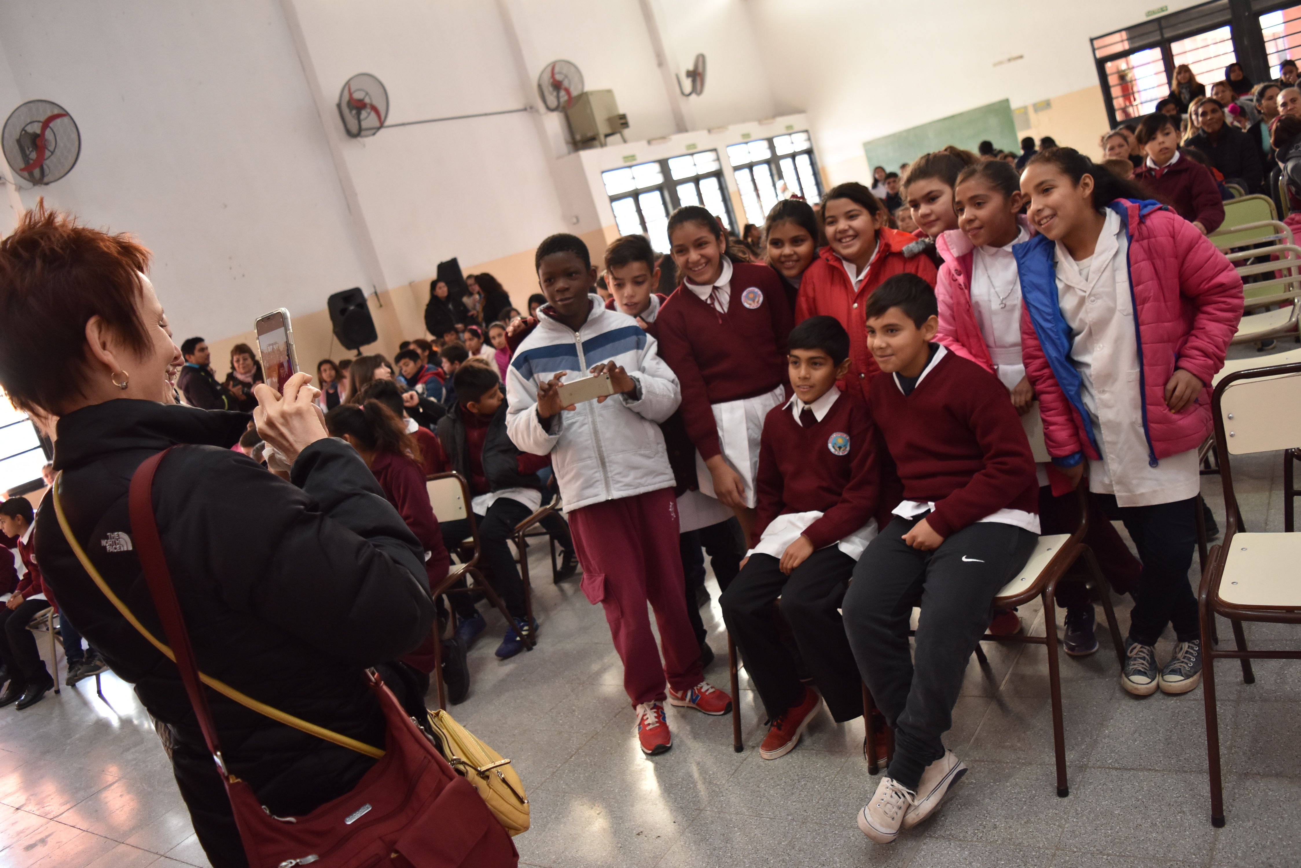 Los chicos no paraban de pedirles autógrafos y dedicatorias a Rebecca y a Inés.