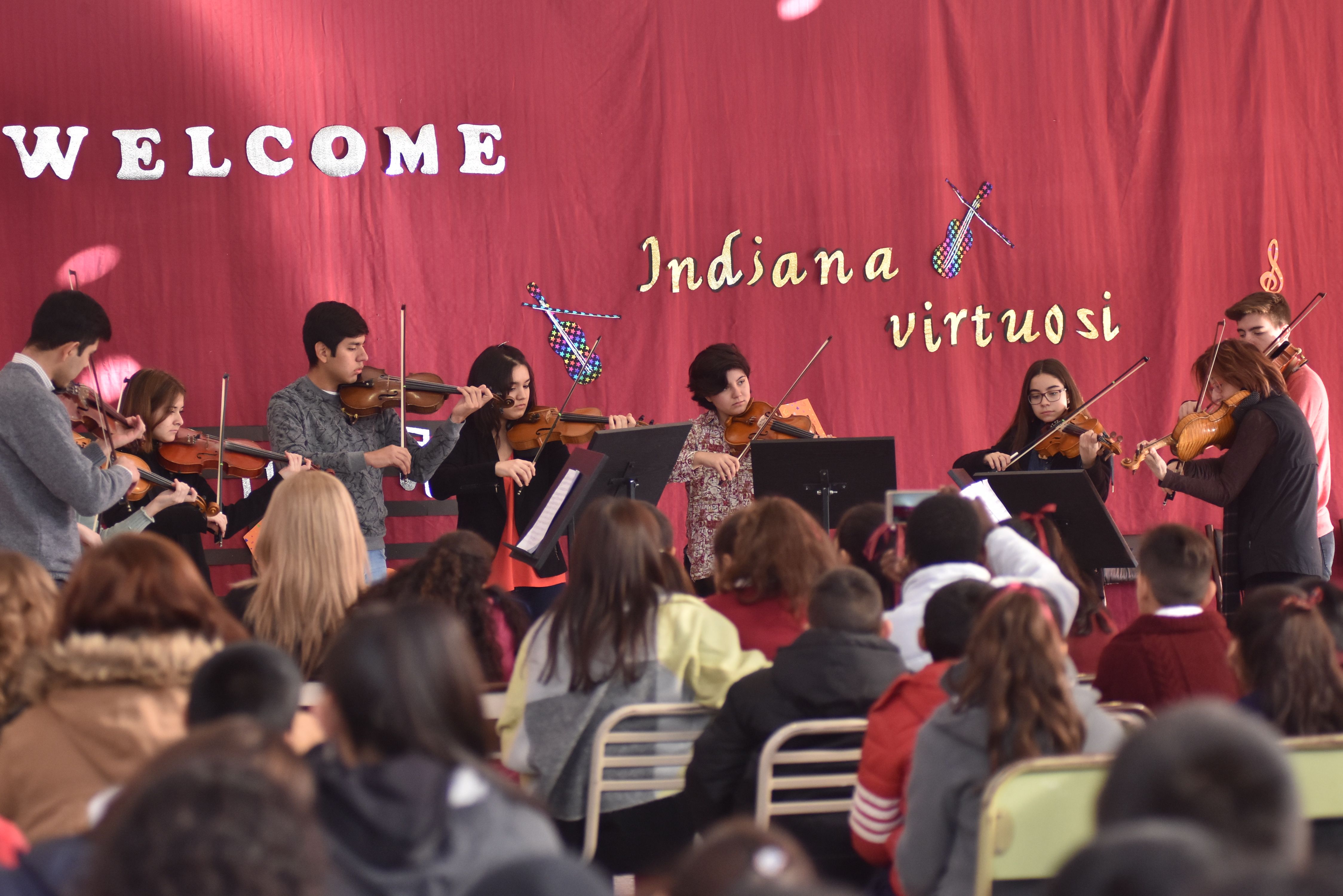 "Para que haya encuentro hay que tocar el corazón", dijo Eduardo Savastano, director del TDB, quien luego presentó a la profesora Mimi Zweig, de la Universidad de Indiana: "Hola, chicos, estamos muy felices de estar aquí, porque tenemos a los Virtuosi de San Juan y van a tocar para ustedes", les dijo a todos los presentes, mezclando inglés y español. Inmediatamente, puso en orden al ensamble de violines y tocaron las clásicas Sonatas de Arcangelo Corelli y el concierto para cuatro violines de George Philipp Telemman. Cuando llegó el turno del Vera Quartet, Pedro fue quien tomó la palabra antes de tocar y a modo de concierto didáctico, explicó cómo suena cada instrumento y dio detalles de las obras (de J. Haydn y M. Ravel) que iban a presentar. Cuando culminó la experiencia musical, todos compartieron un chocolate caliente con semitas. Los músicos no dejaron de firmar cuadernos que los niños en masa les acercaban para tener un recuerdo de ellos; y por supuesto hubo fotos y selfies hasta el infinito. Fue un encuentro especial que no olvidarán; y en pocas horas, los violinistas de Indiana y los estudiantes de Zweig se convirtieron en celebridades en 25 de mayo. Tenerlos cerca y poder abrazar a los músicos, significó mucho para los pequeños. Hoy a las 21.30 los chicos de Tupelí viajarán a la ciudad para presenciar el concierto de Indiana Virtuosi en el Teatro del Bicentenario.