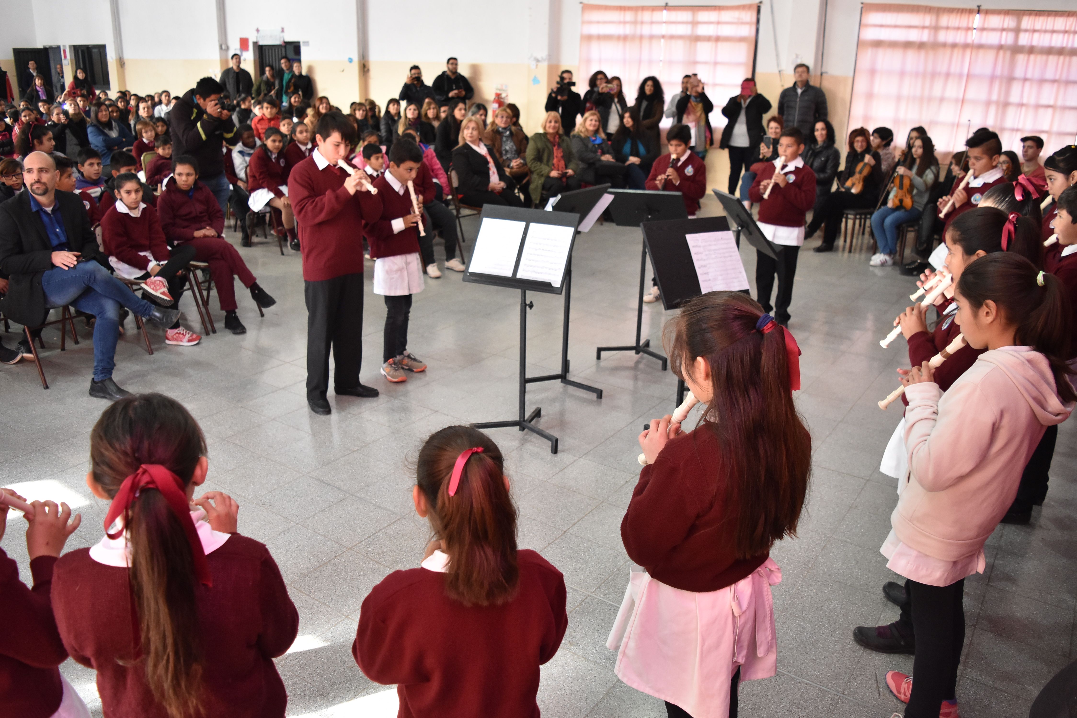 Los alumnos de primaria agasajaron a los visitantes con un repertorio de flauta.