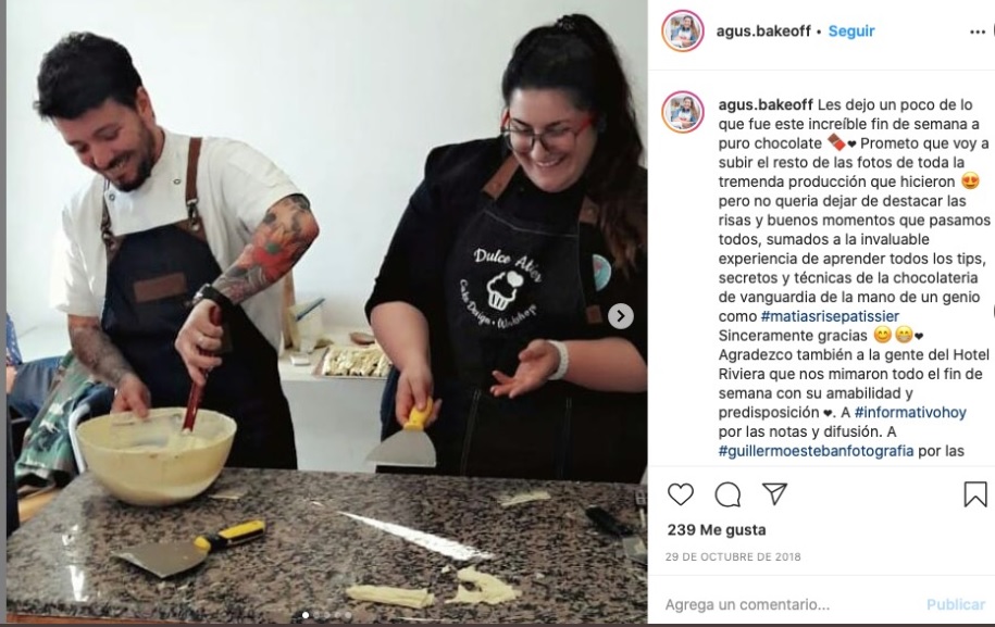 Uno de sus seguidores confrontó a Agustina y junto a una de esas imágenes comentó: “Pero sos profesional de pastelería? El programa no es para amateurs? Qué desilusión!”. A lo que la joven respondió: “No soy profesional, no estudié pastelería y a esta expo fui yo voluntariamente para colaborar con un evento de la Patagonia. Me pagué los pasajes, el alojamiento, todo y di una clase gratuita”.