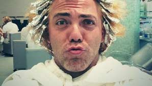 Ayer Cristian volvió a la carga y subió una fotografía haciendo muecas mientras le tiñen el pelo de rubio.