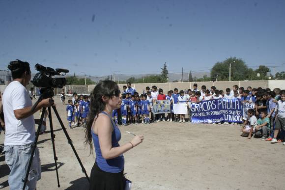 Sin que se enterara la protagonista del concurso, la productora Mariana Eramo y el camarógrafo Lucas Cejas se instalaron en el Club Unión de Rawson para registrar cómo los niños practican sus actividades en la Escuelita de Fútbol de Unión, por la que baila la modelo, tras la salida de Pamela Anderson. Se grabaron varias tomas con la presencia de unos 150 chicos acompañados por sus padres en el campo de juego. Mientras Cejas preparaba su cámara, los niños se juntaron y alzaron sus pancartas y banderas con la leyenda "Vamos Paula". De pronto, una polvareda se levantó porque los pequeños saltaban y cantaban como hinchas, al ritmo de "Olé olé olé, Paula… Paula…", o "El que no salta, no quiere a Paula", pero el cántico que más fuerte se escuchó fue el de "Dale, dale, dale Unión".