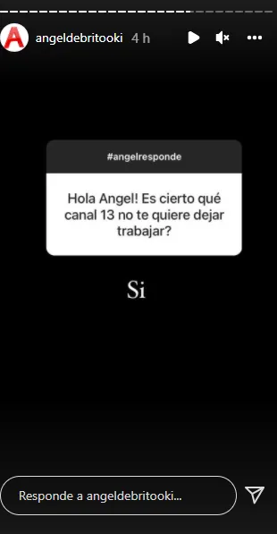 En el día de hoy, fue un seguidor quién directamente le preguntó en un "Ángel responde”, "Es cierto que canal 13 no te quiere dejar trabajar", a lo que el conductor respondió con un tajante: "Sí".
