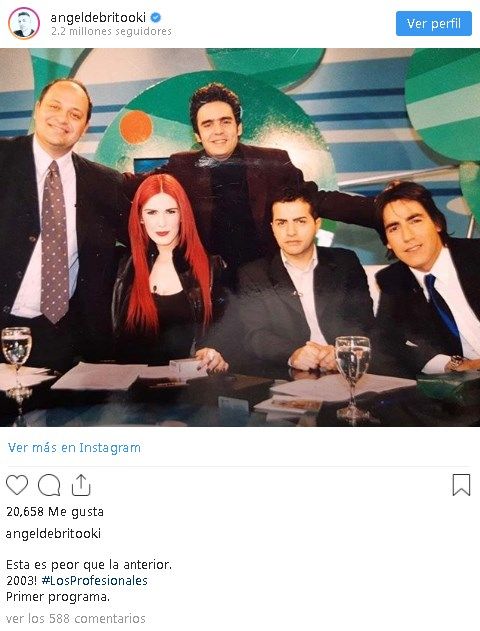 Ángel de Brito sorprendió a sus seguidores en Instagram con una foto retro. El conductor subió a su cuenta una imagen en la que está junto a Viviana Canosa y parte del equipo de Los profesionales de siempre, que se emitió por Canal 9 entre 2003 y 2009.