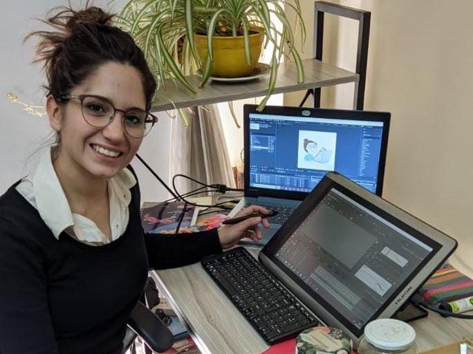 Ya había aplicado una vez, sin resultado positivo, pero pensó que no perdía nada con volver a intentarlo. Después de levantarse a diario a las 5 de la mañana para tomar los cursos online (gratuitos durante pandemia) que se dictaron en el marco del Animayo -único Festival de animación en España en calificar a los Premios Óscar-, volvió a mandar sus trabajos y esta vez el resultado fue distinto. Belén Navas postuló para una de las "Becas al talento’ que da la Escuela de Dibujo Profesional de Madrid (Esdip), con el fin de realizar allá la Diplomatura de Animación, que certifica en animación digital en cinematografía. La noticia de su admisión ya fue un revuelo, porque la escuela elige los mejores portfolios entre los que aplican de distintas partes del mundo. Y trajo de la mano una movida para juntar el dinero que necesita para completar lo que no cubre la beca: una matrícula anual de 1.200 euros y cuotas mensuales de 250.