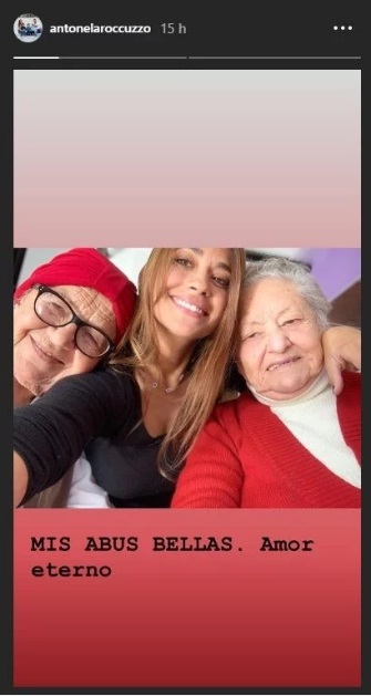 "Mis abus bellas. Amor eterno", compartió la joven a través de sus historias de Instagram, ante sus más de 9 miles de millones de seguidores. En la postal se puede ver a la rosarina rodeada de “Lelita” y “Tatita”.