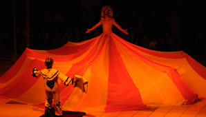 San Juan, 13 de mayo.- Esta noche se realizó la apertura de la Fiesta Nacional del Teatro. Fue en la Plaza Seca del Centro Cívico. Allí actuó "Circo Azul", la obra riojana que fue finalista en Talento Argentino 2011.