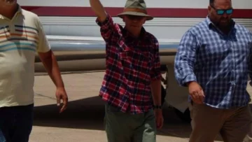 Protegiendo su calva del sol con un sombrero de ala ancha y con sus gafas ahumadas -su marca registrada- el cantante se trasladó al hotel donde descansará antes del espectáculo que dará el 13 en el autódromo de San Martín.