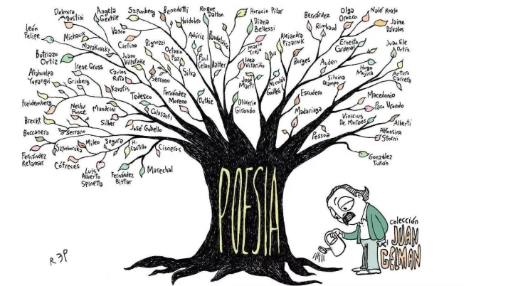 "El amor, la niñez, la revolución, el otoño, la muerte, la poesía, siguen sumiéndome en la abierta oscuridad de su sentido, obligándome a buscar respuestas que nunca encontraré", son las palabras que mejor lo definen y que él mismo escribió Gelman en el prólogo de su antología personal de 1993. Como una forma de acercar la lectura de la poesía tanto a jóvenes y adultos, la Biblioteca Nacional del Maestro (dependiente del Ministerio de Educación de la Nación) liberó en su catálogo digital más de 40 mil títulos y colecciones con el lema #LaBNMEnTuCasa y entre ellos, está Colección Juan Gelman, una sistematizada compilación de biografías y poemas de dicho autor, que viene incluidos otros autores de la poesía universal y nacional como William Shakespeare, Rubén Darío, Alejandra Pizarnik, Atahualpa Yupanqui, Luis Alberto Spinetta, Nicolás Guillén, Mario Benedetti, Jorge Luis Borges, Roque Dalton, Jaime Dávalos, entre muchos otros. Sus 114 páginas contienen textos introductorios sobre la historia, los temas y las corrientes estéticas literarias en torno a la poesía, con sus correspondientes poemas acompañados por las ilustraciones del dibujante Miguel Repiso (REP). El libro, que está también pensado para que pueda ser una herramienta didáctica para estudiantes, padres y docentes, puede descargarse en formato PDF a través del sitio www.bnm.me.gov.ar/giga1/documentos/EL005366.pdf.