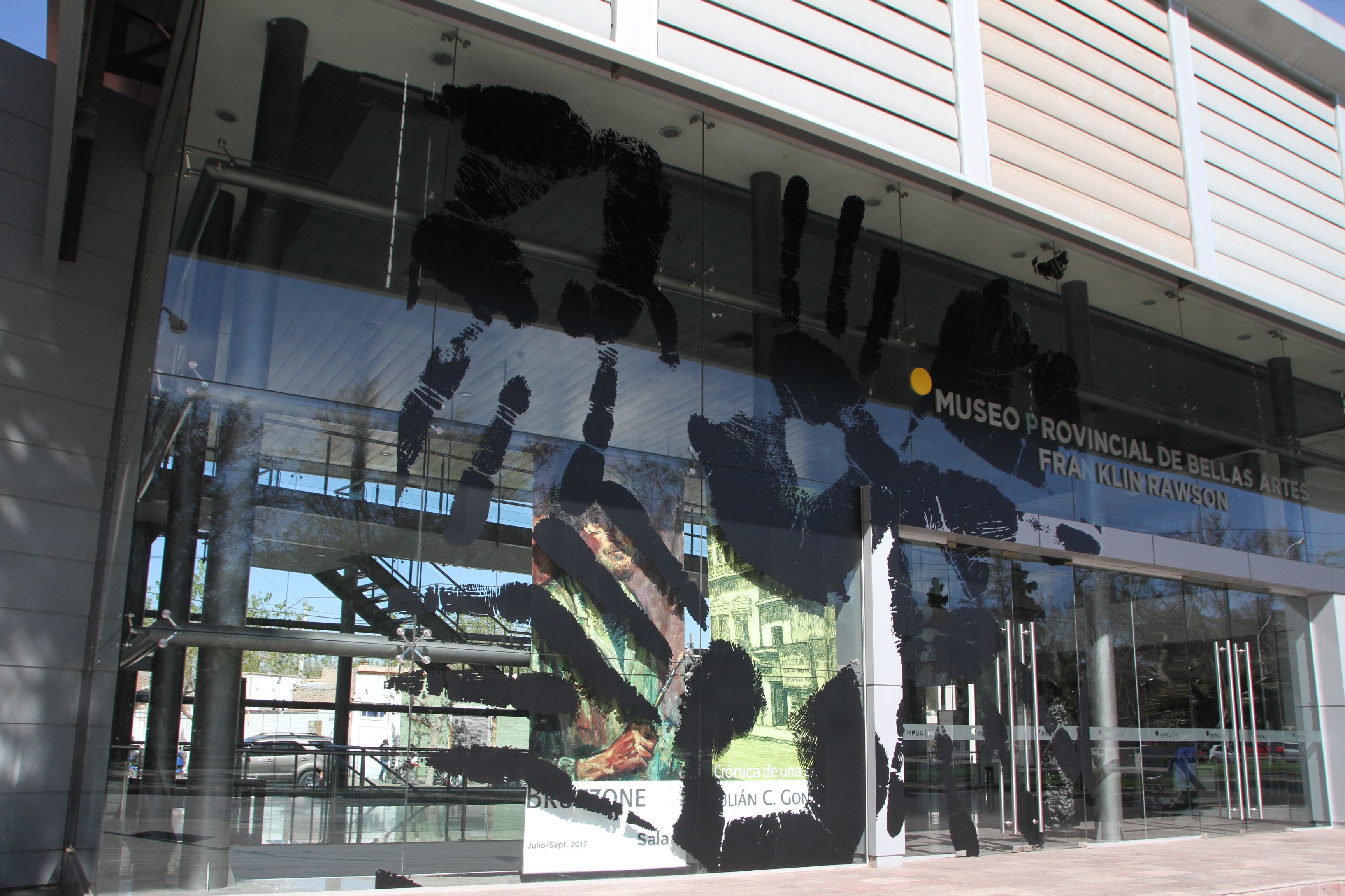 La primera Bienal Internacional de Arte Contemporáneo de América del Sur, organizada por la Universidad Nacional de Tres de Febrero, el Museo Provincial de Bellas Artes Franklin Rawson será sede desde el 22 de este mes, y ya comenzó a mostrarse. Es que como había adelantado a este diario hace algunas semanas Anibal Jozami, rector de la Untref, la fachada del museo sanjuanino sería intervenida con la obra artística de la brasileña Regina Silveira. Por eso es que en el frente vidriado ya puede verse el patrón gráfico que compone la obra Touch, que son huellas de manos -entendidas como "el signo más arcaico e inmemorial de identidad"- tomadas a sanjuaninos en un taller que se realizó en el museo local, con un asistente de Silveira.