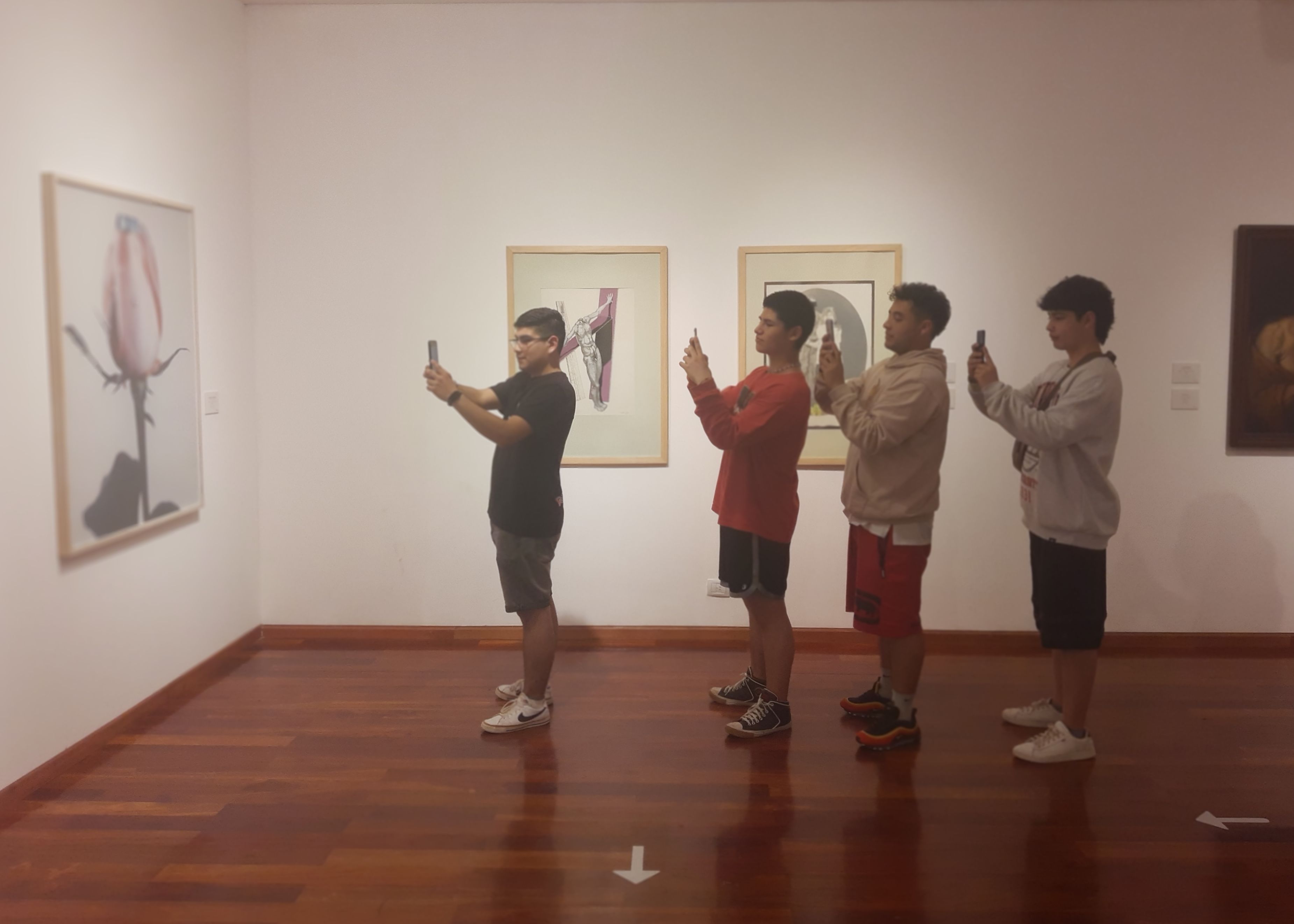 María Elena Mariel fue la guía de la visita en el Museo, donde los chicos posaron divertidos junto a distintas obras de la colección.