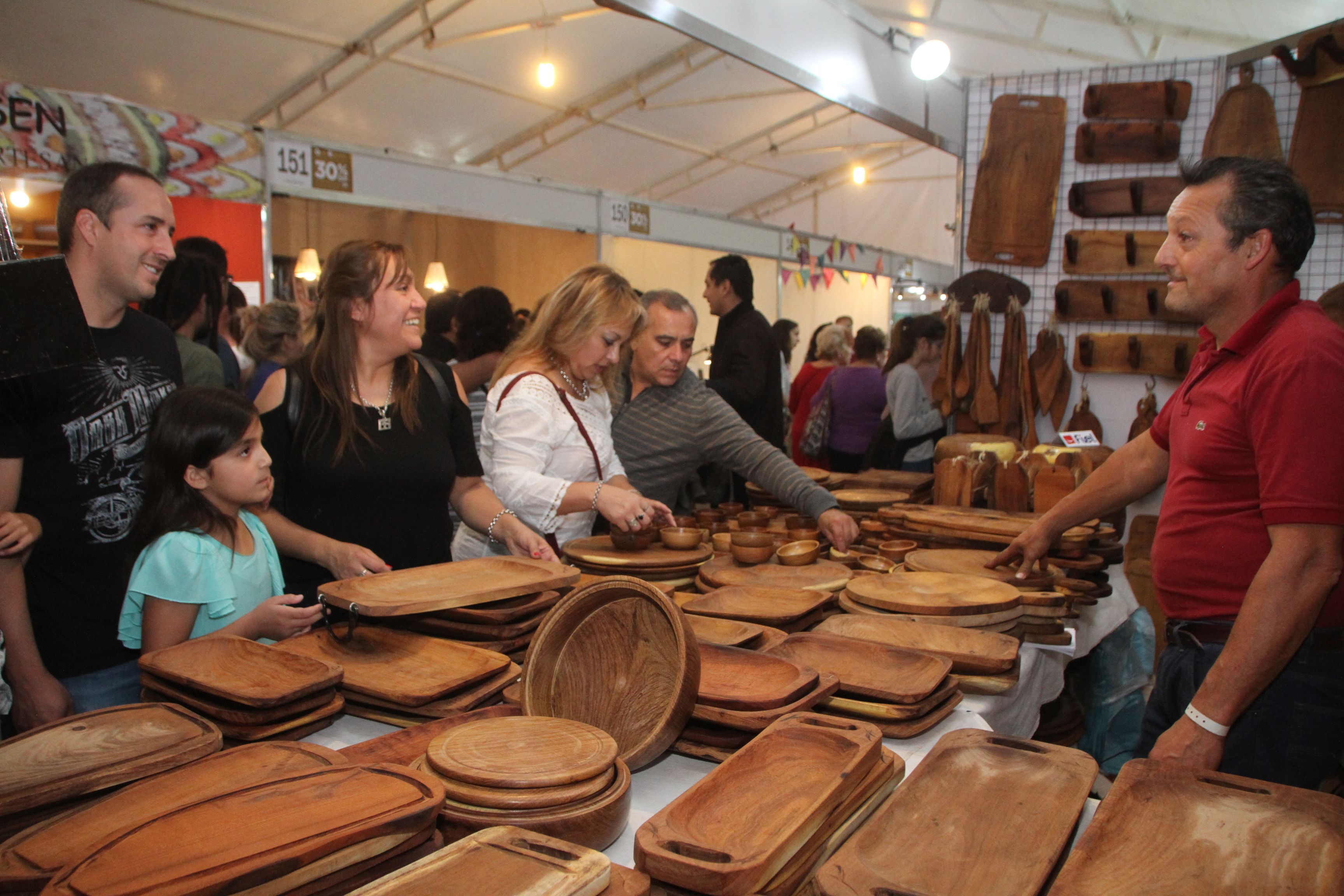 Al recorrer dicho espacio, se pudo encontrar artesanos ya conocidos que tienen una larga trayectoria y son leales a esta feria y volvieron a ofrecer sus creaciones. Por citar algunos, están Mariela Arrascaete de Córdoba, con sus mandalas tridimensionales tejidas; Artesanías PO, de Pola Nelli, con sus "posibles objetos", una línea de juguetes de madera que sirven de lámparas; Néstor Tavalla, el artesano local, que ofrece sus aviones en miniatura; o bien Ramiro Viniegra, de Odín Artesanía Medieval, con sus armas icónicas de caballeros y vikingos. En materia de joyería, lanas, cueros, madera, cuchillos y otros objetos decorativos, pero en mayor medida utilitarios, predominaron en vidriera para quienes buscan adornar o darle un valor estético a aquellos espacios cotidianos del hogar. Para los chicos, no faltó tampoco la oferta de juegos didácticos construidos en madera (jengas, aviones, muñecos, rompecabezas, etc.). Después, aquellos más interesados en el arte, hay finos y elaborados instrumentos musicales de luthiers de Bolivia y de Chile donde figura la percusión y el viento, como los más llamativos.