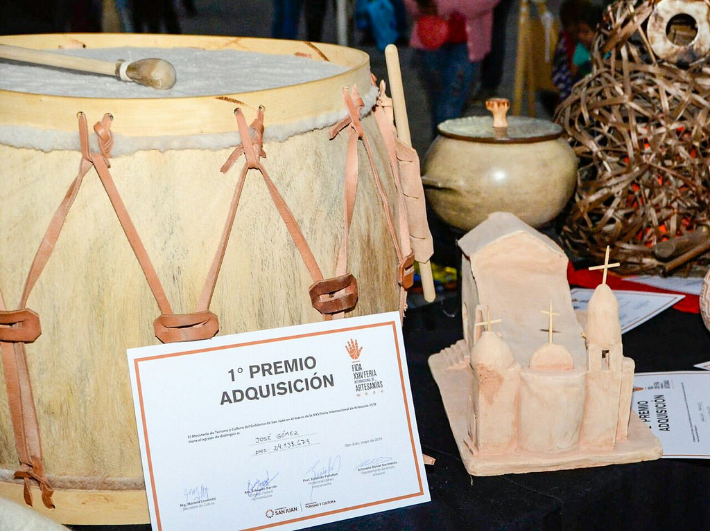 Las autoridades del Ministerio de Turismo y Cultura también otorgaron dos Premios Adquisición más. El segundo fue compartido por el sanjuanino Marcelo Morales, con una réplica de la capilla de la Laguna de Rosario en cerámica roja rústica, y para las sanjuaninas Silvana González, Hilda Cabrera e Ignacia Sánchez, autoras de una alforja tejida al telar con pompones.