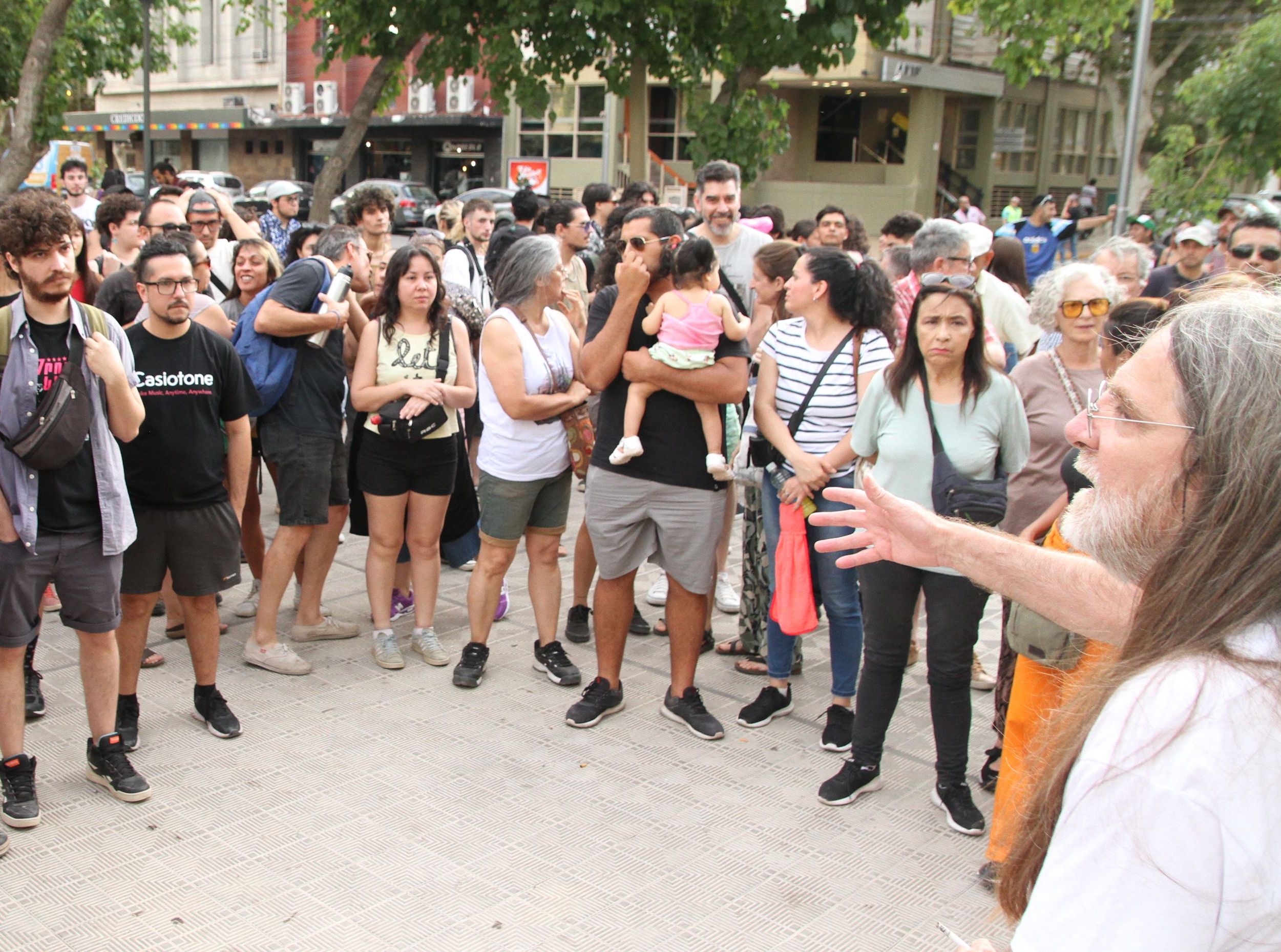 La movida comenzó en las redes sociales, donde el rechazo a las medidas por un sector de la comunidad artística local fue inmediato. El colectivo Teatristas Autoconvocados fue el primero en reaccionar y convocó a otros trabajadores del arte y la cultura para reunirse y deliberar sobre qué acción tomar. El resultado fue la concentración del viernes por la tarde-noche, con la presencia de actores, directores, gestores culturales, músicos, cantantes, cineastas, escritores, editores, artistas plásticos y demás, logrando una presencia de más de 100 asistentes en la plaza central de la ciudad. Las diversas voces plantearon sus respectivos posicionamientos, demandas y estrategias de cómo continuar para frenar estas medidas nacionales.