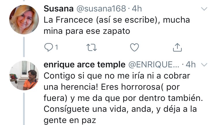 Al ver el mensaje, Arce no pudo contenerse y disparó sin ningún filtro. “¡Contigo sí que no me iría a cobrar una herencia! Eres horrorosa (por fuera) y me da que por dentro tamibén. Consíguete una vida, andá y deja a la gente en paz”, la cruzó el español, muy enojado.