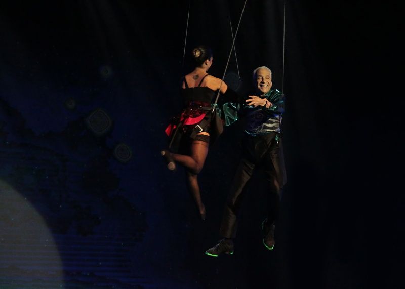 Uno de los grandes momentos fue cuando al abrirse el telón para el número de "Tanguera" apareció Cormillot colgado cabeza abajo abrazado a una bailarina para realizar el baile en el aire.