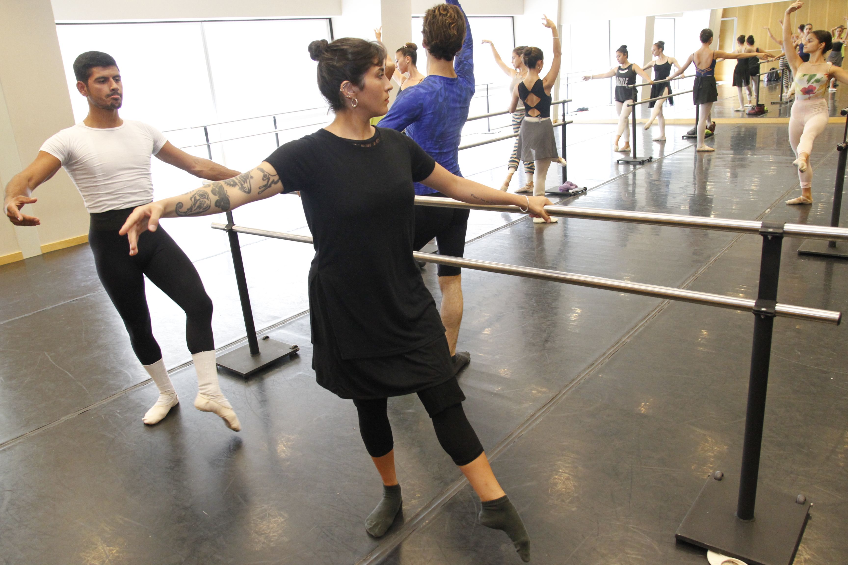 Sin pausa desde que entran hasta que salen; y con la técnica como blanco; en la clase se respira un clima de exigencia pero distendido a la vez. Después del tránsito obligado por la barra, Balanza marcó distintas secuencias en el centro. Una de ellas requería velocidad y precisión en las piernas; y los alumnos tenían unos minutos para "sacarla" antes de empezar a pasar por grupos. "Patita de chancho", dijo uno de los practicantes mostrando cómo le salía el paso. "¿Tienen alguna duda?", preguntó la maestra. "No, no, lo mío es motriz", agregó otro, mofándose de sí mismo y entre las risas de su grupo. Listo, todos en posición, la música empieza a fluir y los cuerpos a seguirla, marcados muy de cerca por la profe, que no les pierde pisada.