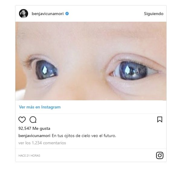 En este sentido, luego de mostrarse junto a la bebé en una postal sumamente conmovedora, el actor mostró por primera vez los ojos intensos y azules de su niña, y aprovechó para poner en palabras lo que siente.
