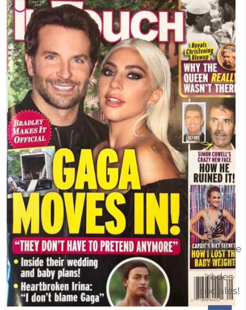 La tapa del semanario In Touch exclama en grandes letras amarillas ‘GAGA MOVES IN’ (Gaga se muda) y debajo citan la frase de su informante, una persona supuestamente cercana al actor: "Ya no tienen que fingir".