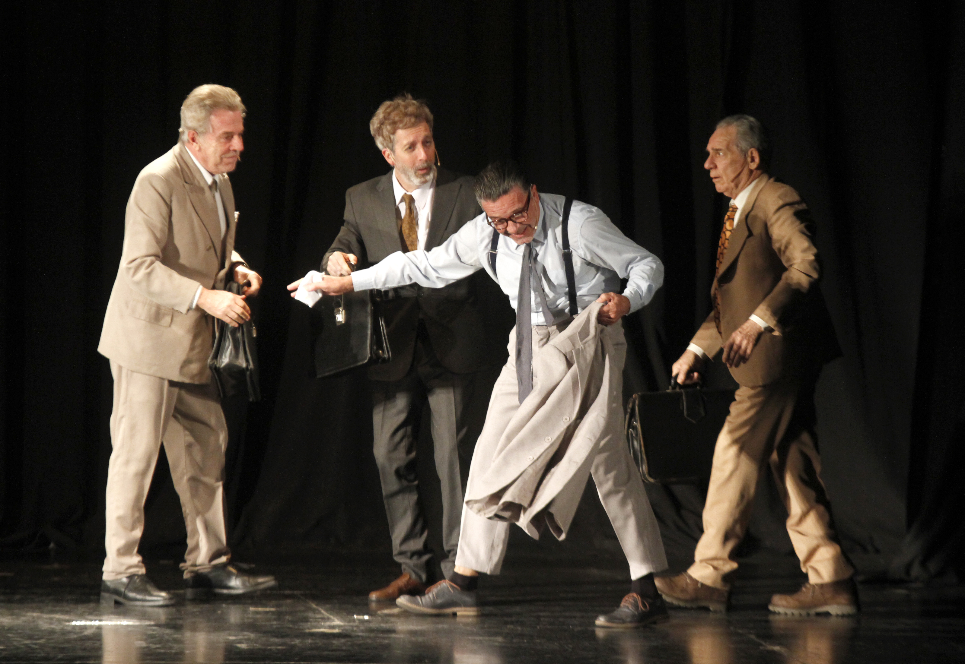 Osvaldo Laport, Hugo Arana, Víctor Laplace y Matías Scarvaci (en reemplazo de Pepe Soriano que por indicación médica no viajó) protagonizan esta obra escrita por Rafael Bruza y dirigida por Andrés Bazzalo, logrando entretener abordando situaciones disparatadas pero posibles.