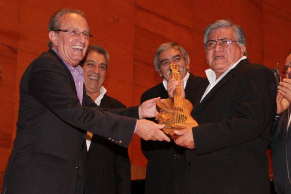 Público, música y aplausos hubo al por mayor el viernes en el Auditorio Juan Victoria. Fue en la primera noche del XIX Festival de Guitarras del Mundo 2013, en la que además de la actuación de talentosos músicos, se realizó el cálido homenaje a la trayectoria de Los Caballeros de la Guitarra, que iniciaron hace más de cinco décadas Enrique Barrera y Ernesto Villavicencio. Después de distintas formaciones, el trío está integrado hoy por Barrera, Patricio Álvarez, Ángel Dávila. "Los reconocimientos los recibimos gustosos, pensamos, por algo será, por eso tratamos de seguir tocando y hacerlo lo mejor posible. Estamos muy agradecidos" manifestó Barrera a DIARIO DE CUYO. De impecable traje negro, los Caballeros de recibieron la distinción de manos del secretario general de UPCN, José Villa y después retribuyeron el homenaje con una breve actuación, ante una sala absolutamente colmada, con un público muy entusiasta. Antes habían actuado Arché Trío, (Jonatan Vera, Carlos Santana, y Jorge Arredondo), y también participaron de esta velada de notables interpretaciones, el dúo de Jorge Cardoso y Sylvie Dagnac; y el cuarteto de Guitarras Ecos, de Mendoza. El festival cerró anoche en Barreal, en el complejo Monseñor Carlos Cruvellier, donde Los Caballeros de la guitarra desplegaron su música para disfrute de los calingastinos.