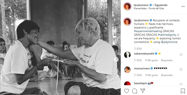 Más adelante, Dignity subió una serie de fotos donde se la visualiza con varias personas compartiendo un encuentro especial: “Recuperar el contacto humano. Nada más hermoso, expansivo y gratificante. Gracias”, señala el posteo donde la actriz está sentada, en un íntimo momento con diversas personas que parecen ser de un grupo especial, donde se genera entre ellos un contacto físico acariciándose sus rostros, y un fuerte contacto visual.