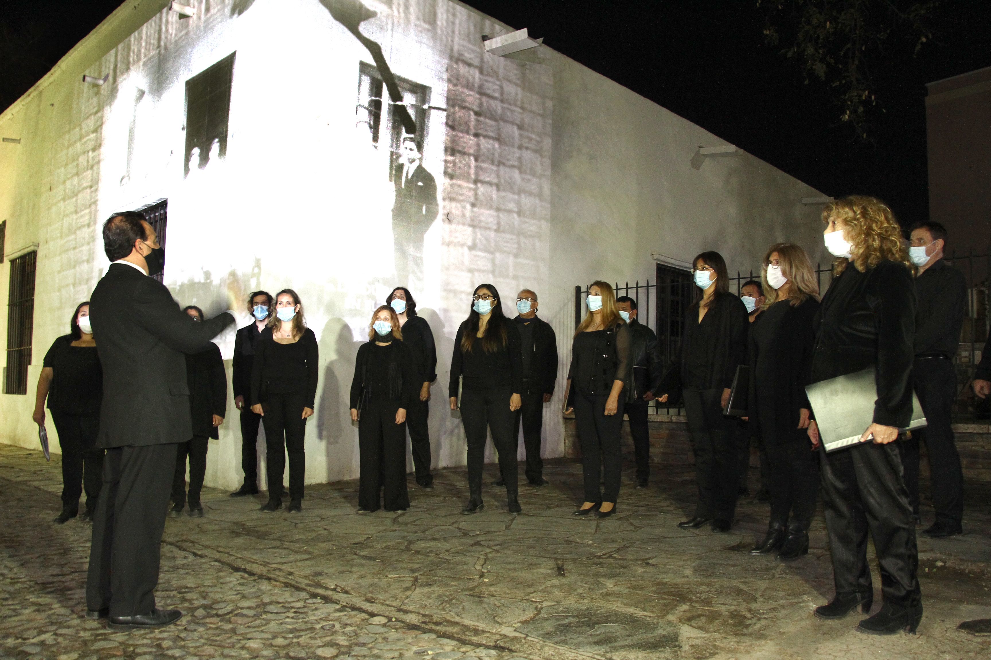 Para conmemorar el 133ro aniversario del fallecimiento de Domingo F. Sarmiento que se cumplen hoy, el Museo y Casa Natal programó anoche un breve acto realizado en la puerta de la casona, que contó con la actuación del Coro Universitario de la UNSJ que conduce el maestro Jorge Romero, en una formación reducida, de tan sólo 20 integrantes. El grupo cantó con barbijos, pero de igual modo, y pese al ruido de la Avenida Libertador, la calidad interpretativa prevaleció y se pudieron disfrutar de las tres piezas que eligieron para la ocasión. Después del Himno provincial a Sarmiento, cantaron "Romance para Sarmiento" (de la cantata del compositor mendocino Fernando Ballesteros) que el coro había estrenado el año pasado de manera virtual. Para cerrar, llegó la Chacarera de las Piedras, de Atahualpa Yupanqui.
