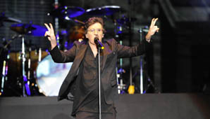 Buenos Aires, 23 de octubre.- Vestido de negro, sentado al piano y con una escenografía dominada por luces rojas, el artista rockero arrancó el show de su vuelta con los temas "El amor espera” y "Rap del exilio”.