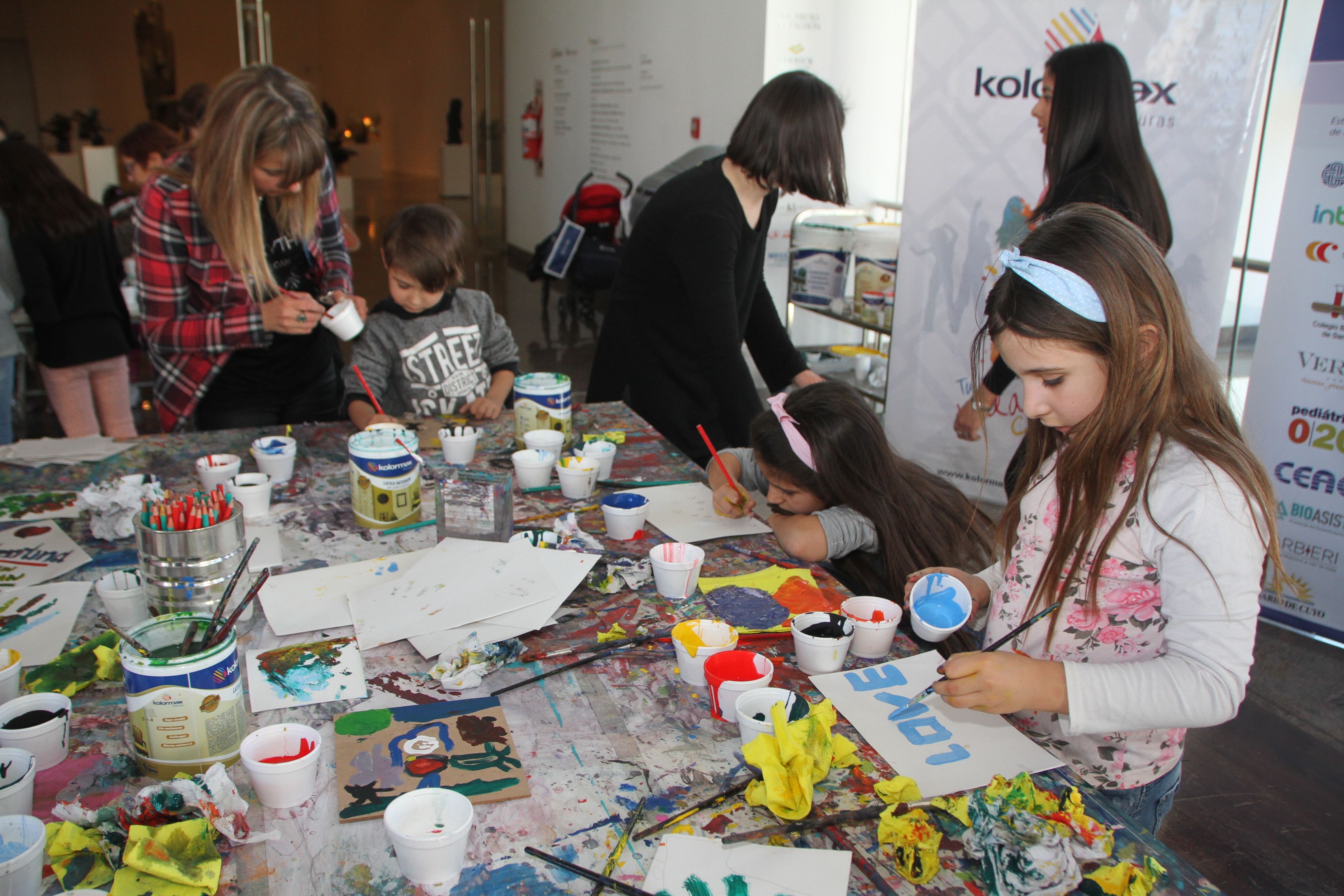 Pinturas, esculturas, música y danza; todos los elementos y lenguajes se aprovecharon en los espacios del museo y que entraban en interacción con las exposiciones actuales. Niñas y niños, también algún adolescente, se concentraban en sus trabajos pictóricos sobre maderas y otros materiales provistos por las asistentes de la institución. En la sala 1, se armaban esculturas de cartón con formas totalmente abstractas que estimulaban la imaginación. Los dibujos y pinturas mostraban un mosaico colorido de creaciones de los peques. Pero el evento central que captó la atención de todos fue el escenario montado en la explanada de entrada al edificio. Allí, los chicos impusieron mucho ritmo y ternura al encuentro.