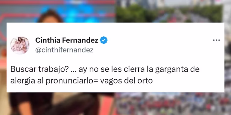 En su perfil de Twitter, la mamá de Charo, Bella y Fran escribió duras palabras contra los manifestantes: “¿Buscar trabajo? Ay no, se les cierra la garganta de alergia al pronunciarlo. Vagos del or**”. La reacción de la artista que cuenta con más de 2 millones de seguidores tuvo 300 “me gusta” y 31 retweets.