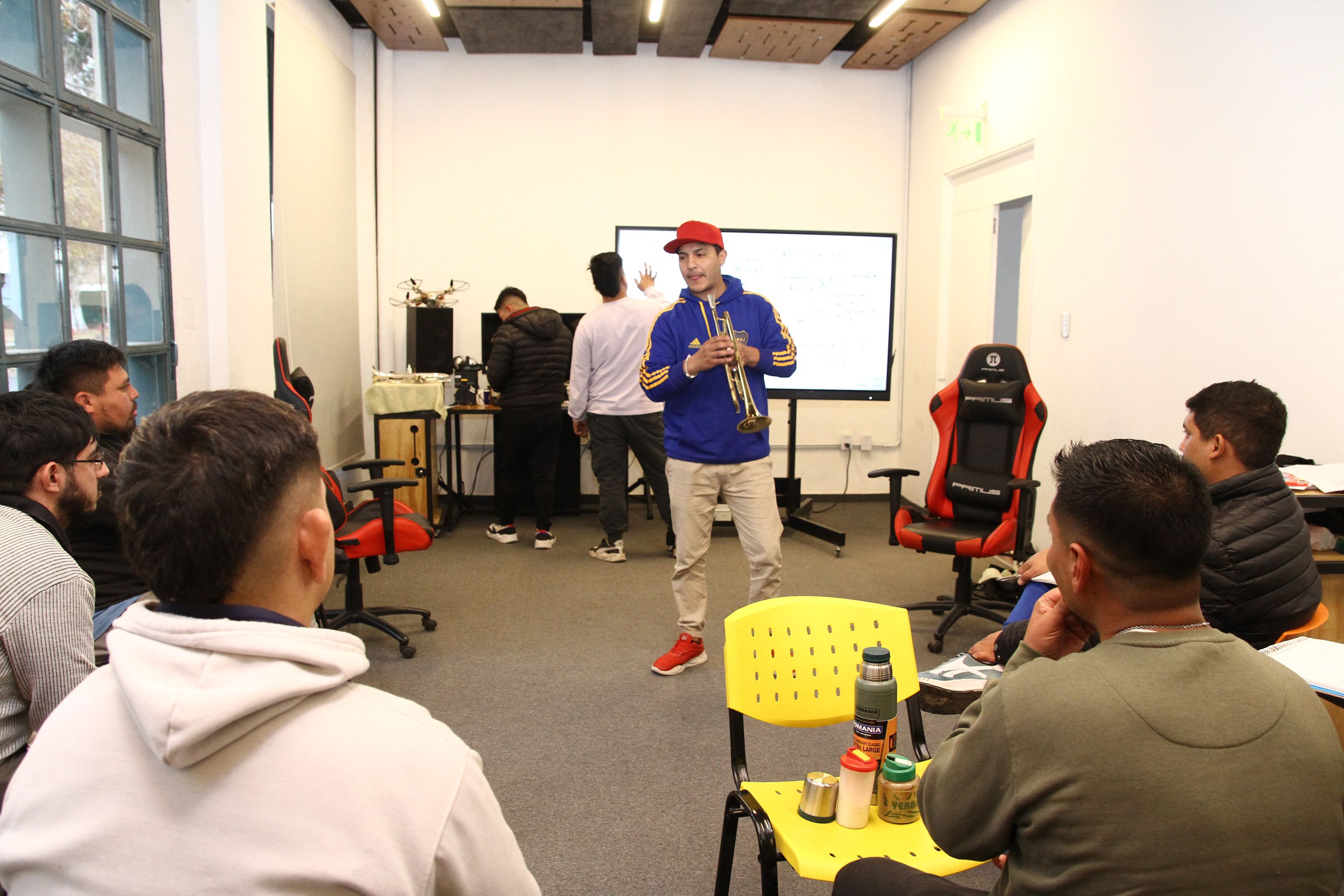 En la clase de vientos, los asistentes ven los secretos para perfeccionar el uso de la trompeta, un instrumento que es infaltable en toda formación cuartetera contemporánea.
