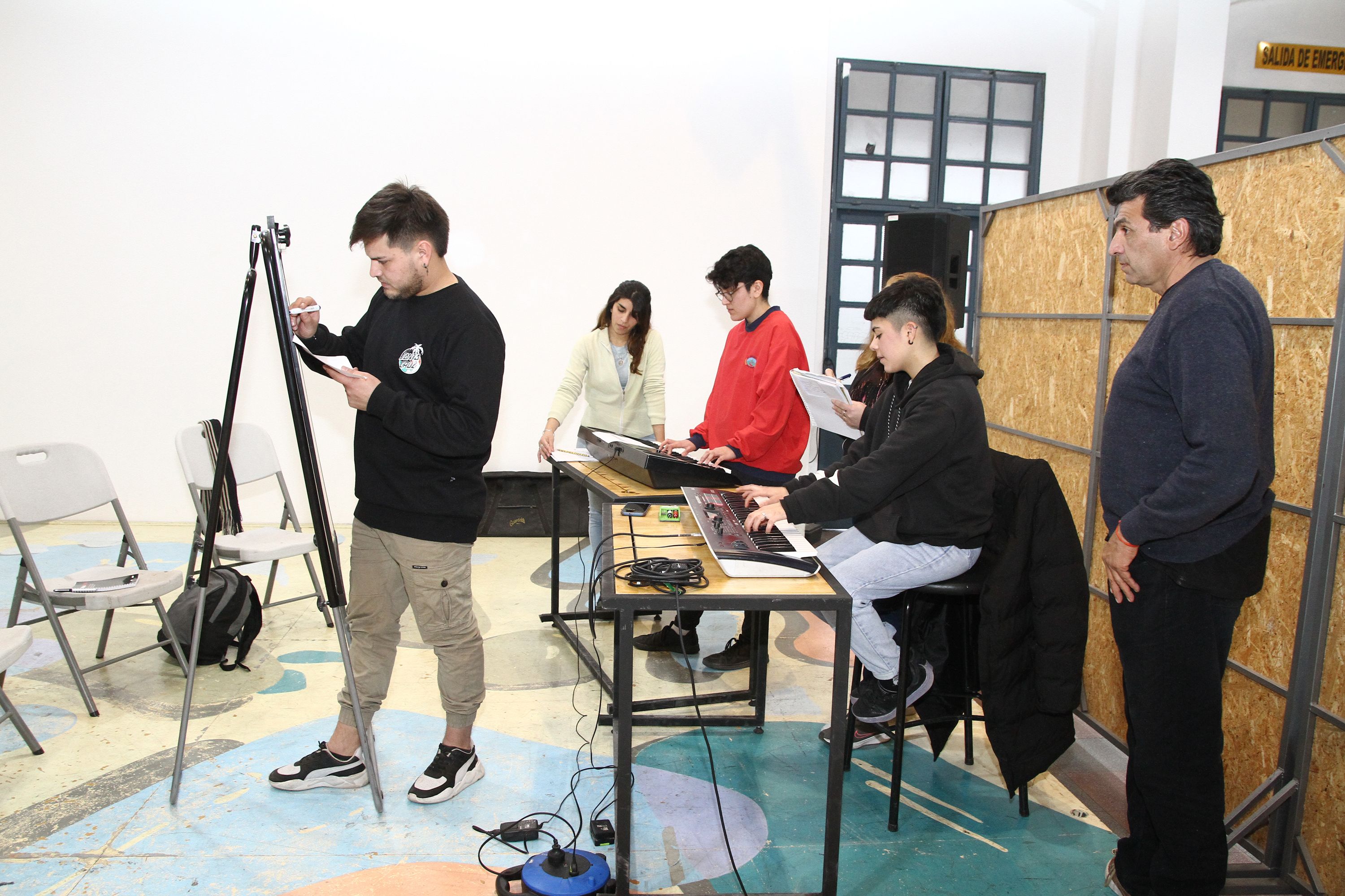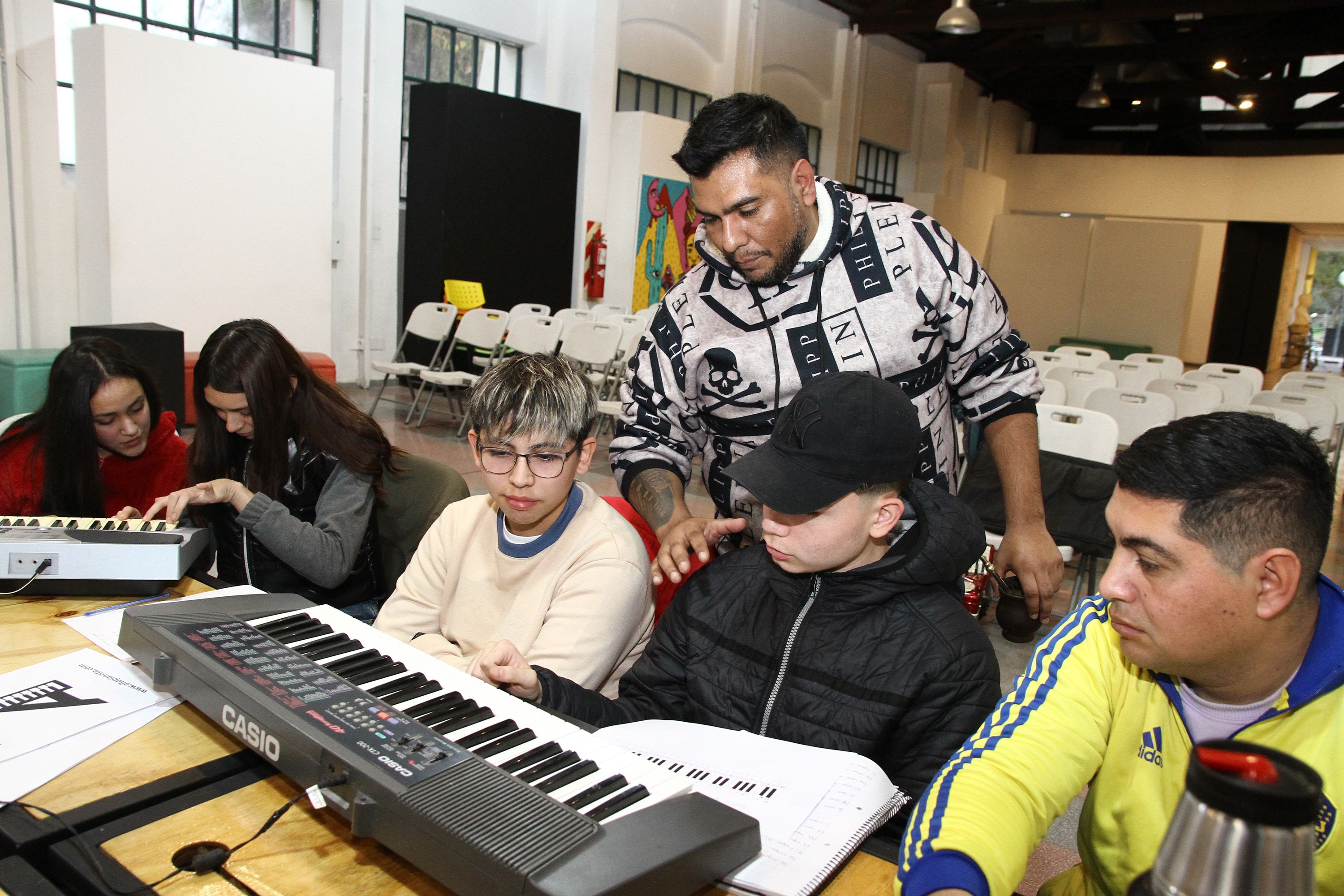 Por primera vez, un proyecto artístico y formativo llevado de la mano de Omega -en colaboración con el Centro Cultural Conte Grand- se hizo realidad. El Taller de Música Popular contempla de una manera amena y accesible, una introducción al mundo de la música, pero especialmente, al ritmo del cuarteto. Aunque como género, su origen sea más autóctono de Córdoba -declarado como música tradicional folklórica de aquella provincia-, como expresión musical es escuchada y practicada en todo el territorio nacional. En el caso de San Juan, además de una fuerte popularidad, cuenta con una identidad "cuyana", gracias a la notoriedad de Omega, que en los últimos años, es una de las agrupaciones más numerosas (en cuanto a integrantes) y más convocantes en cantidad de espectadores y seguidores por las redes sociales. Es en este contexto que el taller tiene como primer gran objetivo: promover el desarrollo profesional en la inserción a la industria musical del cuarteto. Sin embargo, no está pensado solo para músicos locales, sino también para cualquier particular o aficionado que no cuente con experiencia o conocimiento para involucrarse en la "cocina" artística o bien, aprender usar un instrumento. El arranque de las clases, consistió en una introducción teórica relacionada con la historia artística del grupo, los fundamentos y los orígenes del cuarteto. El siguiente paso fue el contacto con los instrumentos, el reconocimiento de sus sonidos y las notas y acordes necesarios para su ejecución; la afinación y la estructura de una canción; entre otros temas. El taller está dividido en diferentes áreas, cada una con un integrante de la formación de Omega que fueron los que ejercieron el rol de profesores. Por ejemplo, Rolando Lucero en teclado y acordeón; Claudio Herrera y Martín Olmo en trompeta; Lucas Gómez en piano avanzado; Matías Silva en Bajo; Emanuel Córtez en guitarra eléctrica y acústica; Mauricio Flores, Sergio Fernández y Cristian Esquivel; voces y coros Hugo Flores; y producción de espectáculos y giras Alejandro Flores y Jorge Fernández. Al recorrer los espacios divididos en el Conte Grand, el entusiasmo y la curiosidad de los asistentes era evidente en sus rostros, por las preguntas que hacían y cómo interactuaban con los instrumentos. Lucas Gómez, quien estaba dando indicaciones a sus alumnos en el segmento del piano, notó en primera persona el interés que el público puso en clase: "Estamos dando oportunidades a mucha gente, que cuando nosotros que empezamos siendo muy chicos en esto, no las tuvimos", dijo con una sonrisa exultante el músico a DIARIO DE CUYO mientras observaba cómo los chicos practicaban en el piano eléctrico. "La tarea de enseñar que me toca, es un reto novedoso para mí y me pone muy contento poder transmitirles el amor, el cariño y la pasión por el cuarteto. Porque lo particular que tiene, es la alegría que contagia, que te hace bailar y es muy fácil de reconocer al escucharla", explicó. De acuerdo a su formación, Lucas contó que la principal base histórica del cuarteto es el piano, bajo y acordeón. "El piano es la base de todo, después se complementan el bombo de la batería, el bajo y los demás instrumentos de viento. A diferencia del Tunga Tunga tradicional, hoy el cuarteto se fue ampliando integrando otros instrumentos, fusionando otros estilos y eso está bueno porque te da facilidad para llevar melodías más pegadizas", dijo el pianista.