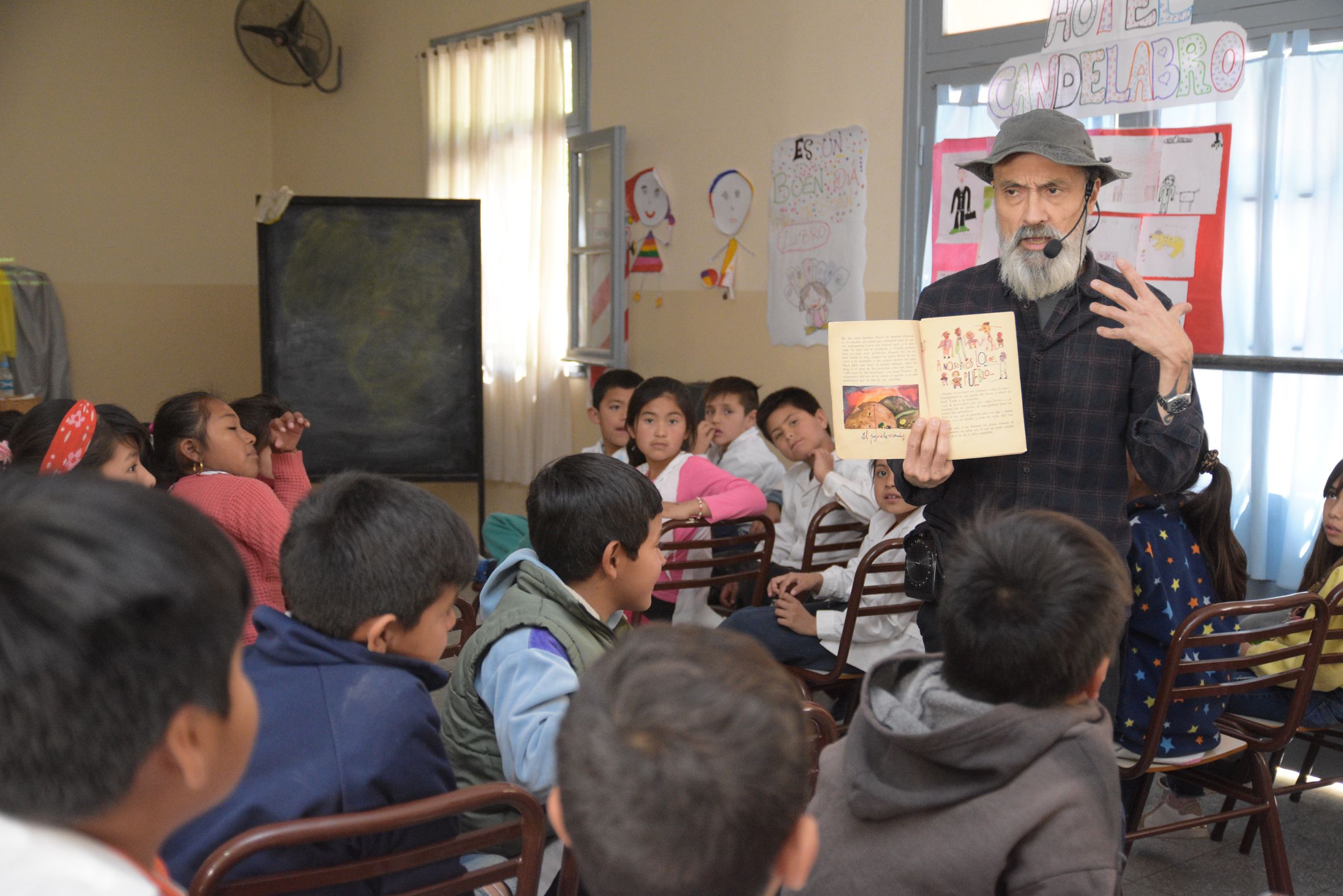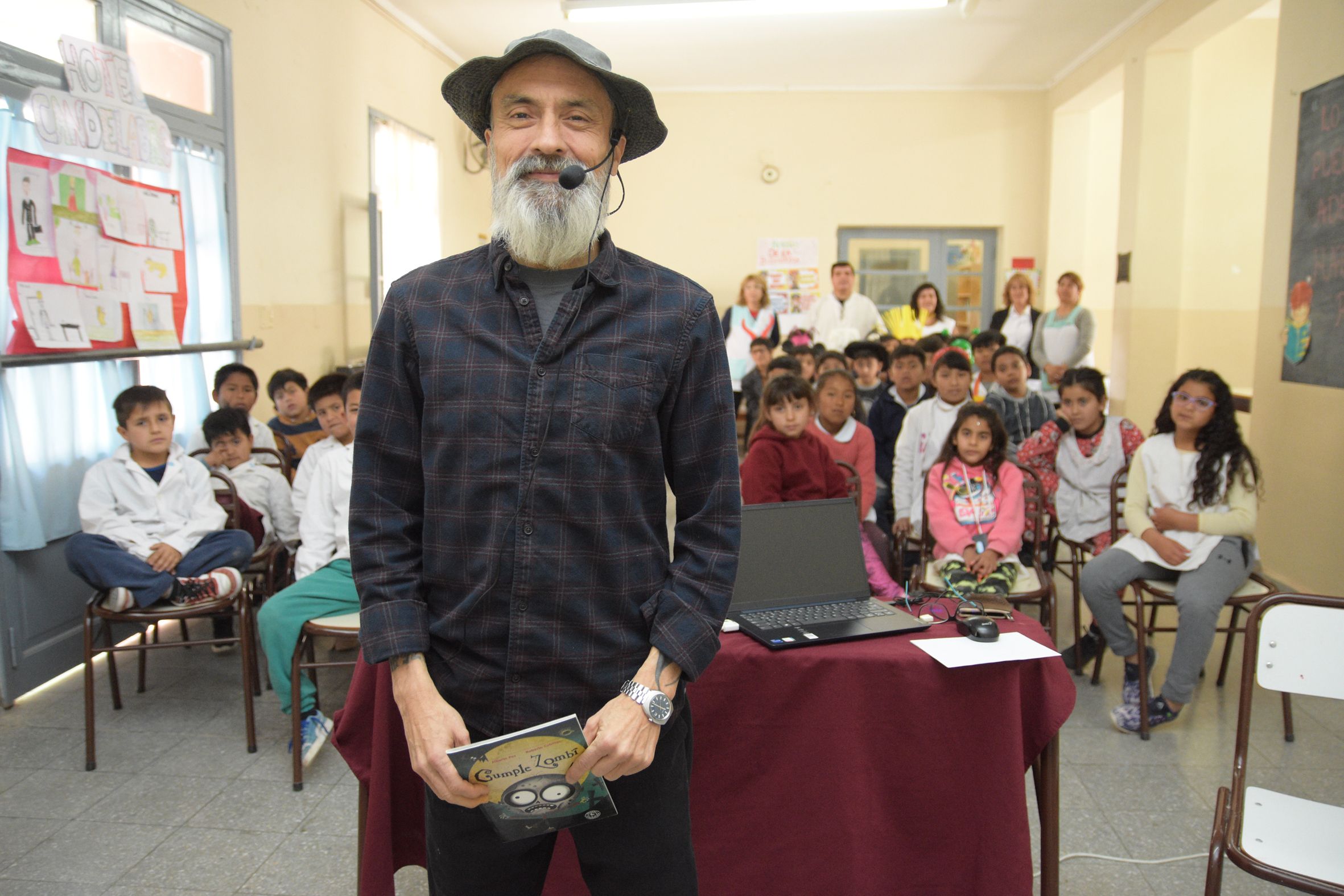 El escritor e ilustrador brinda charlas esta semana en escuelas primarias de Santa Lucía, Pocito, Sarmiento y Rivadavia.